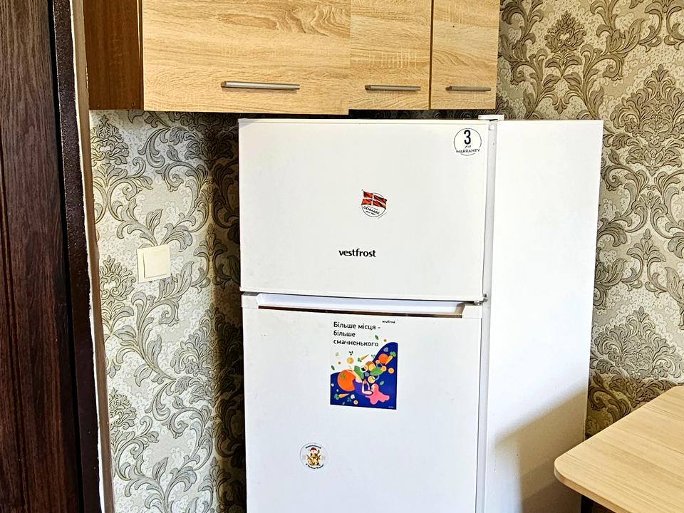 у гуртожитку, меблі холодильник, є місце під пральну машинку, на кухні теж своє місце, цілодобово гаряча вода, інтернет, лічильник на світло, кімната чиста та тепла. Без котів та собак !