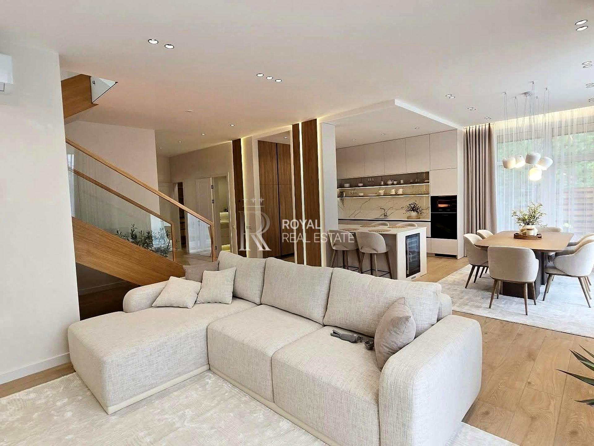 Будинок повністю готовий до проживання — інтер'єр виконаний у сучасному стилі з використанням якісних матеріалів.