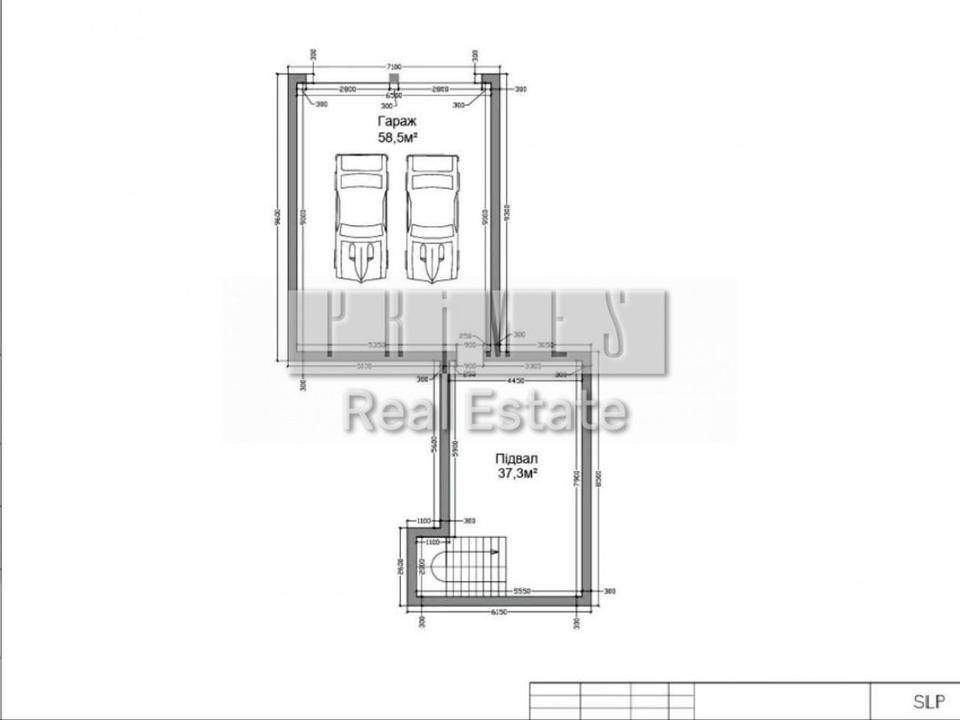 Планування: Цокольний поверх: гараж 58 м2, кімната 37 м2.