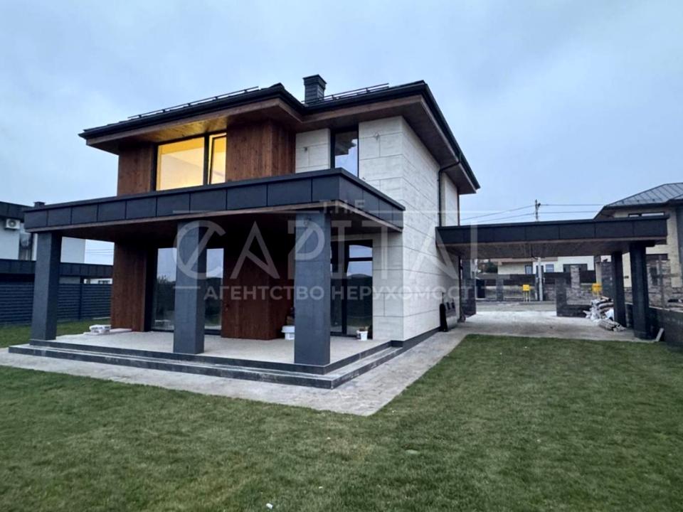 Будинок, 2 поверхи, 5 кімнат. Площа ділянки 7 соток. Планування кімнат Роздільне. У будинку є Підігрів підлоги, Кондиціонер, Пральна машина, Душова кабіна, Ванна, Холодильник, Мікрохвильовка, Посудомийна машина, Автополив, Гараж, Тераса. Будинок побудований в 2025 році. Загальний стан будинку - З ремонтом. Комісія за послуги 3 %