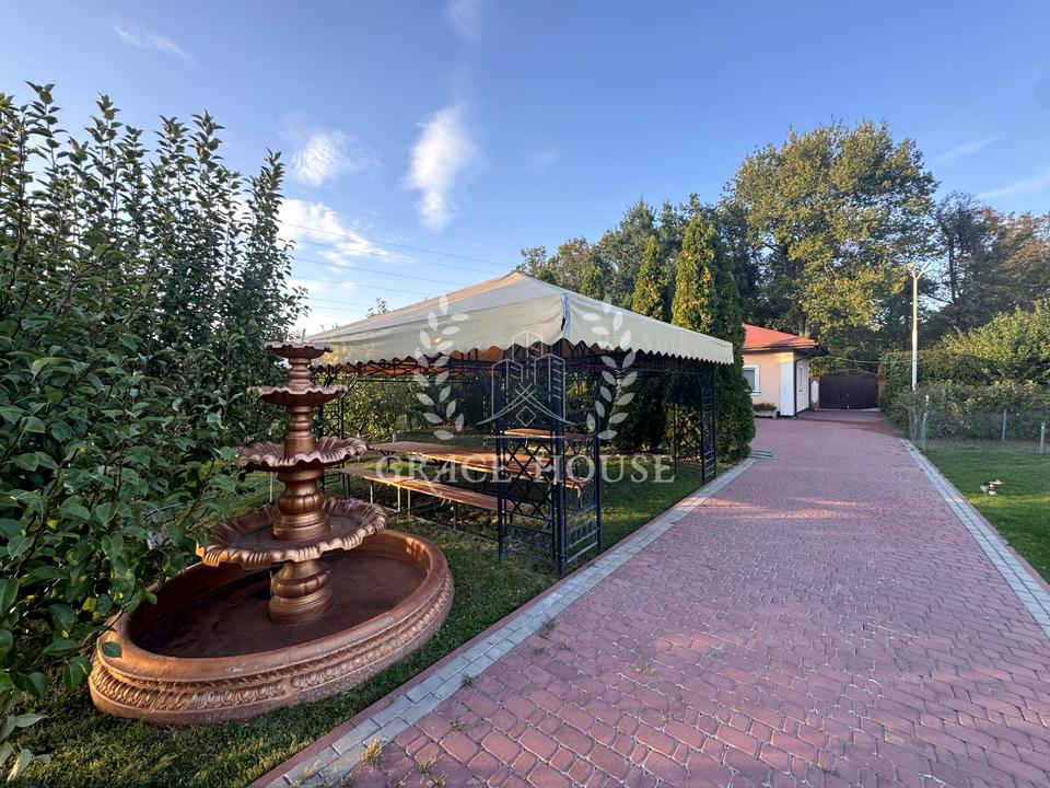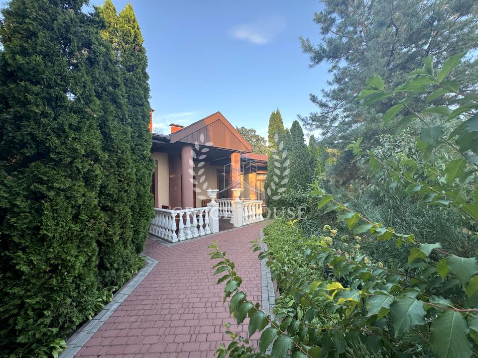 Будинок, 1 поверх, 6 кімнат. Площа ділянки 100 соток. Планування кімнат Суміжно-роздільне. У будинку є Камін, Кондиціонер, Пральна машина, Душова кабіна, Ванна, Зона мангалу, Гараж, Лазня, Басейн. Загальний стан будинку - З ремонтом. Комісія за послуги 50 %