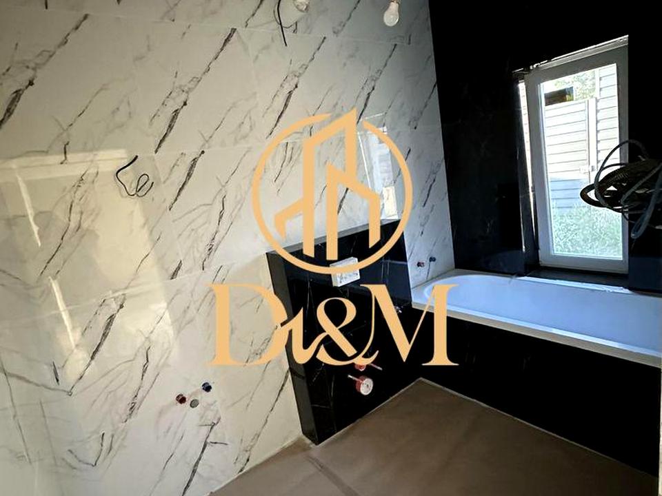 Навесні закінчені всі внутрішні роботи: пофарбовані стіни в світлі пастельні відтінки. В спальні покладений ламінат. Решта підлога – плитка. Підігрів підлоги. Ванна встановлена, душ куплений.