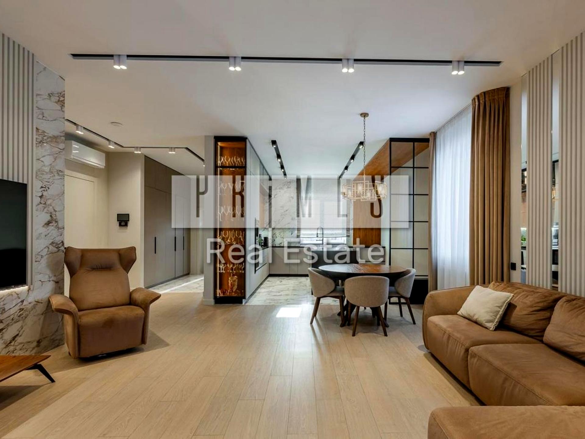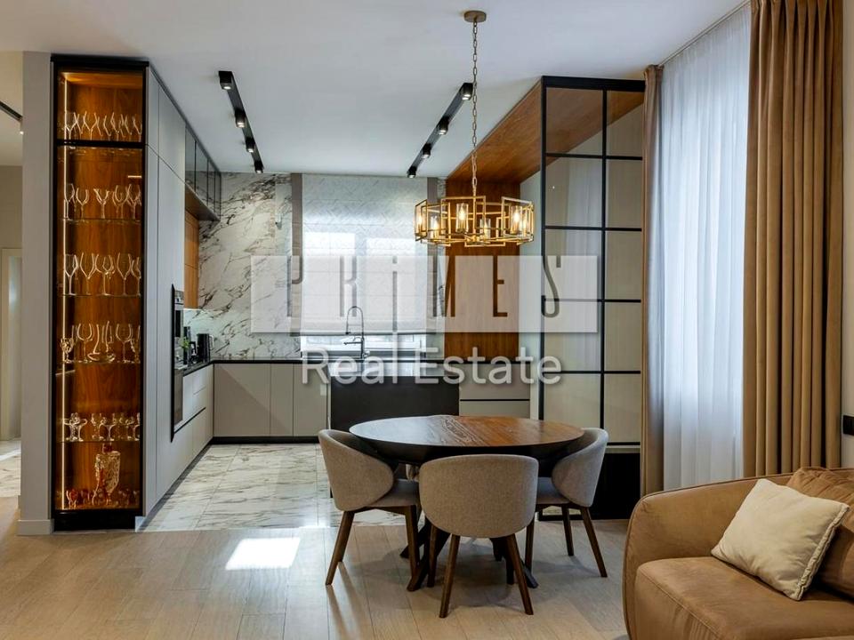 Виконаний дуже дорогий і якісний ремонт з використанням преміальних матеріалів. Висота стель — 3,20 м, дверні прорізи — 2,80 м. На підлозі натуральний дубовий паркет. Встановлені меблі Blanche, які залишаються новому власнику разом з усією вбудованою технікою, окрім особистих речей.