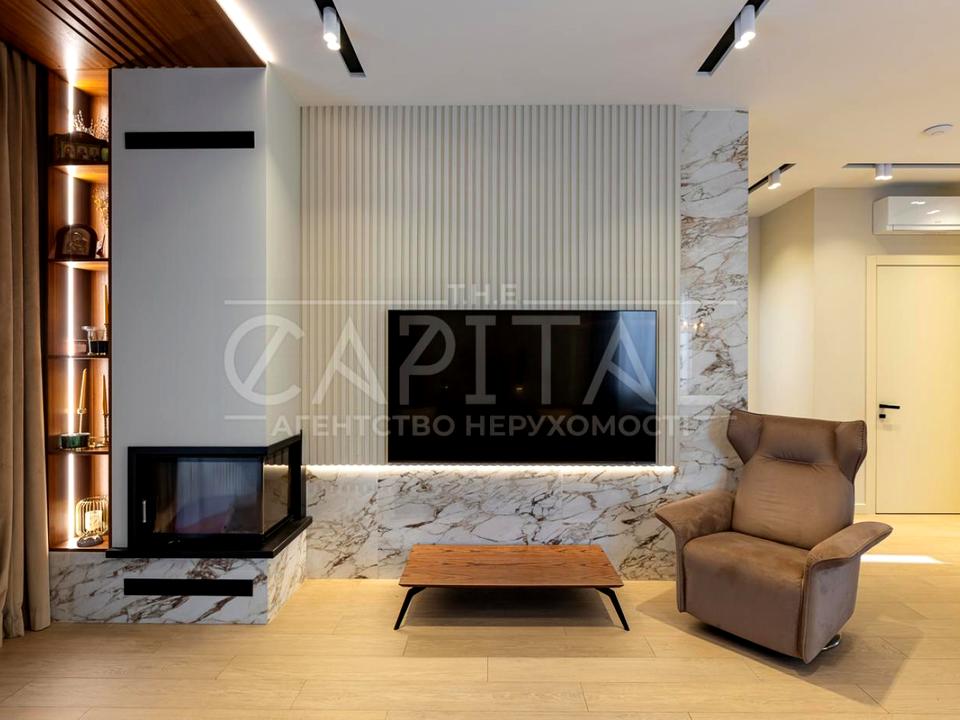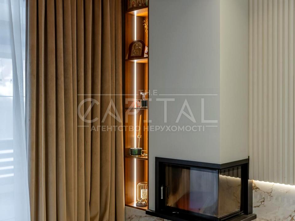 У вітальні встановлений повноцінний камін з цільного скла, який створює особливу атмосферу затишку та додатково обігріває будинок.