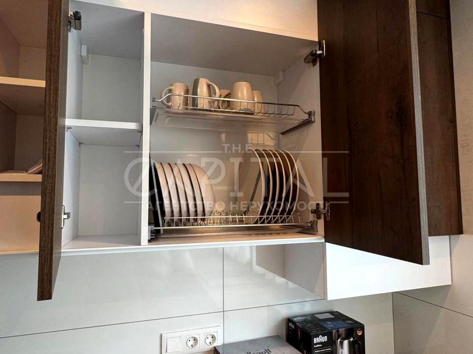 Кухня повністю обладнана сучасною технікою (холодильник, посудомийка, мікрохвильовка, плита з духовою шафою, чайник). Є набір посуду.