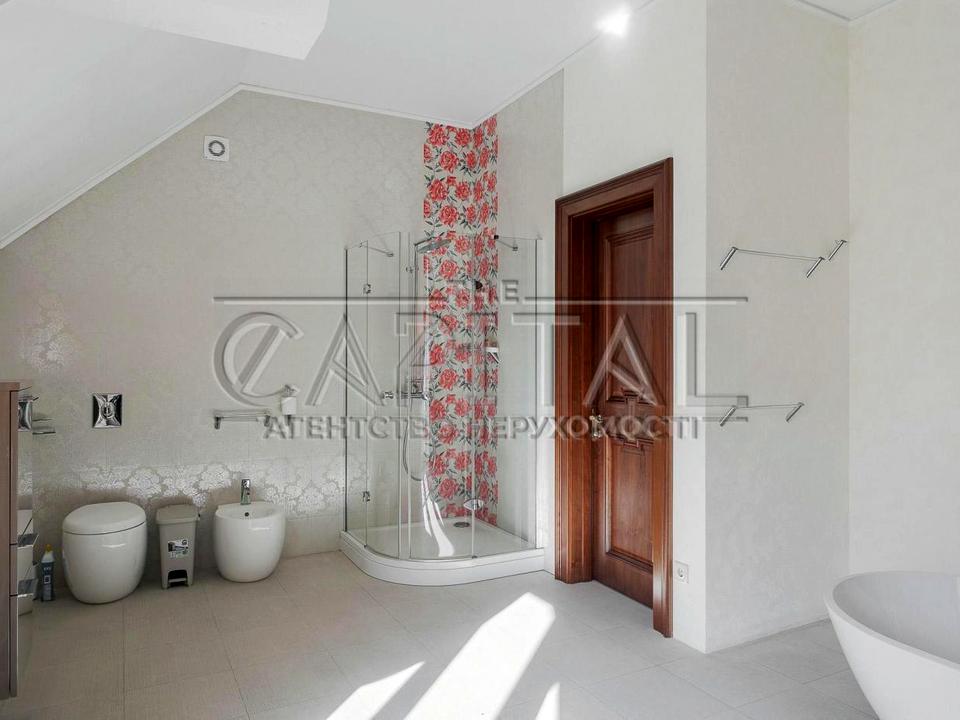 Будинок виконаний згідно з проектом (додається) із здійсненням спеціалізованого технічного нагляду з керамоблоків, з монолітними/збірно-монолітними перекриттями через армовані пояси. Фундамент – сваї. Внутрішні перегородки - червона цегла. Вікна – алюмінієві Aluplast. Двері – алюмінієві Elio. Сантехніка - Hansgrohe, Grohe, Geberit, Rak. Опалення - підлога з підігрівом (вода), котел Viessmann, наявність додаткового електро-котла. Покриття підлоги: 1пов – плитка Ariana Ceramica (Італія), 2-й та 3-й поверхи – дубовий паркет, с/в – плитка Cicogres, Almera (Іспанія). Система водоочищення та фільтрації, насос підсилення тиску. Будинок обладнаний блискавкозахистом. Централізована система газо-, електро-, водопостачання, каналізації. Електропостачання трифазне, потужність - 18 кВт.