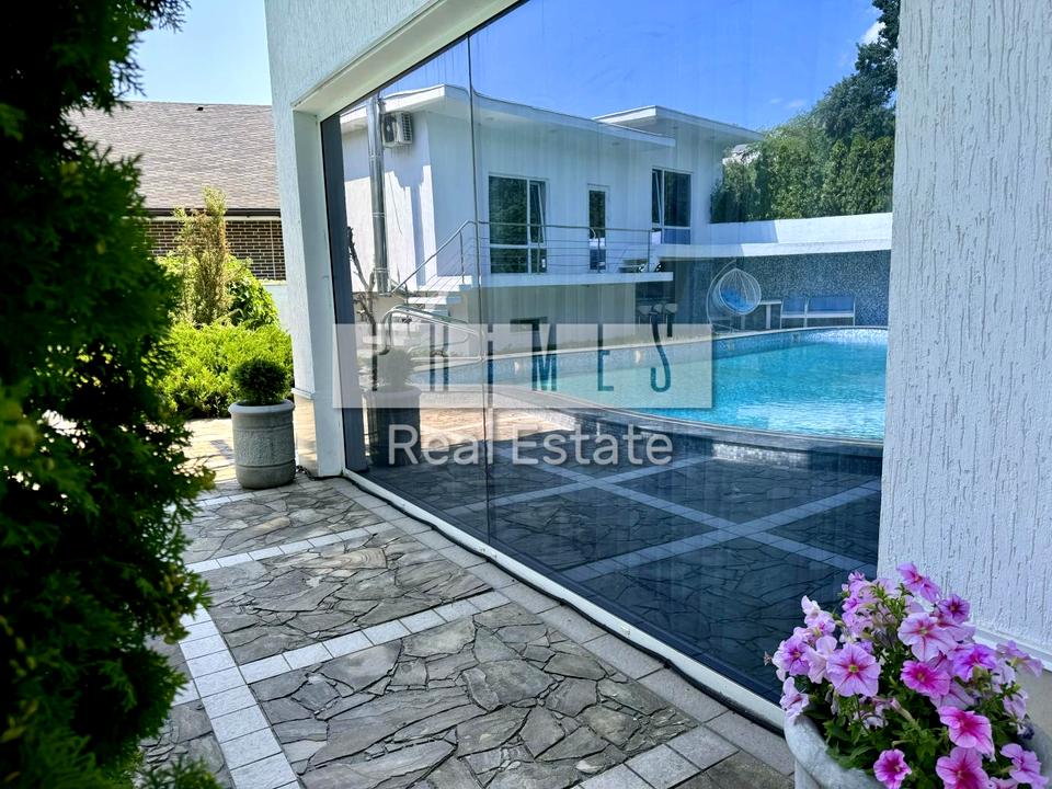 До вашої уваги пропонується будинок з басейном у стилі Hi-Tech у Голосіївському районі, проспект Науки. Сучасний авторський дизайн. Ідеальне розташування. Поруч Голосіївський ліс, озера. Площа будинку 270 кв. м., 3 поверхи, ділянка 10 соток. На території: основний будинок, відкритий басейн з підігрівом та душем, зона відпочинку з лежаками та парасольками, барбекю з мангалом, барна стійка, гостьовий будинок, гараж. Основний будинок (270 кв. м): панорамне скління, простора вітальня з каміном, кухня з островом, столовий стіл на 8 персон, 4 спальні, вбиральня, кінотеатр, сауна, спортзал, 3 санвузли, 4 тераси, акваріум, озеленення. Гостьовий будинок (57 кв. м.): 2 кімнати, з/в. Укомплектовані всіма необхідними меблями та технікою. Тепла підлога. Опалення газове та на пелетах. Каналізація септик, дизель генератор 15 кВт, вода центральна. Благоустрій ділянки: виконаний ландшафтний дизайн, живоплоти, сад, декоративні чагарники, ялиці, ялинки, туї, оформлений газон, доріжки з тротуарної плитки, штучний водоспад, освітлення. Ділянка 10 соток по всьому периметру огороджена огорожею. Є 2 входи. Чудові сусіди, тиха вулиця. Є генератор. Можна із тваринами.