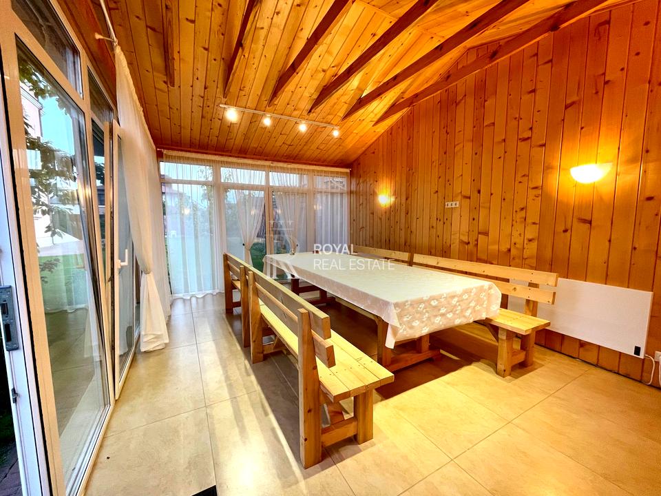 На території: закритий двір з ландшафтним дизайном, басейн 10 х 3.5 м. з підігровом до 35 градусів, бесідка з панорамними вікнами та отопленням, навіс для 2 автомобілів + відкрита парковка для 3 автомобілів, відеоспостереження 24/7 (є окремий будинок з усіма зручностями для охорони), в’їзд на територію приватного сектору під цілодобовою охороною.