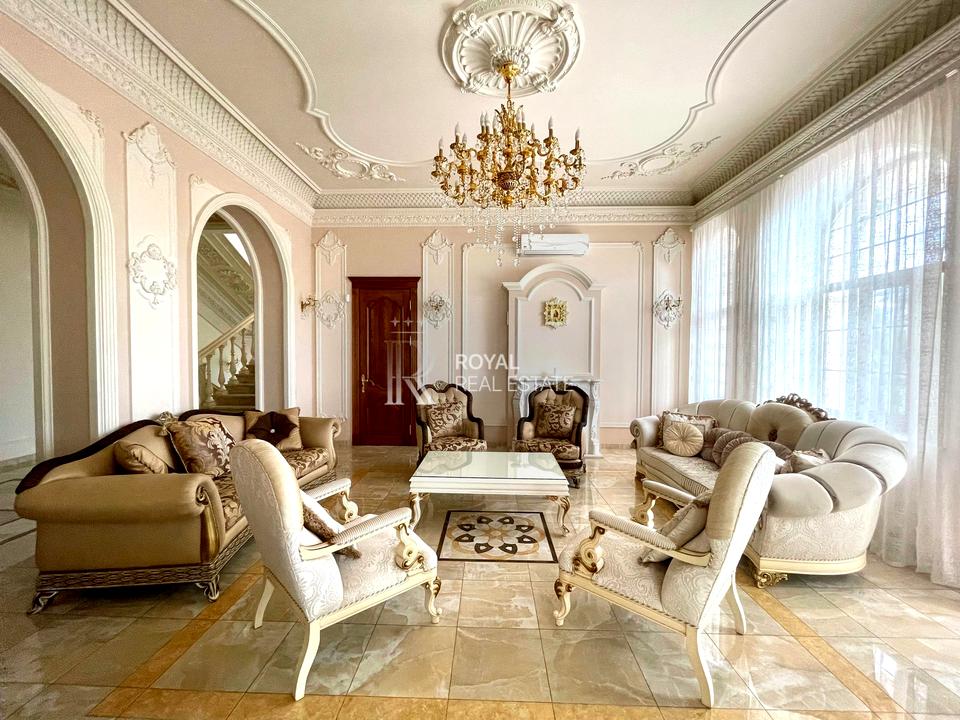 У будинку зроблений дорогий ремонт з використанням сусального золота, мармуру, оніксу, рідкісних порід дерева, оксамиту, шовку, габіленів, кришталю. Ліпнина промальована та вилита під індивідуальне замовлення по зразкам з італійських палаців.