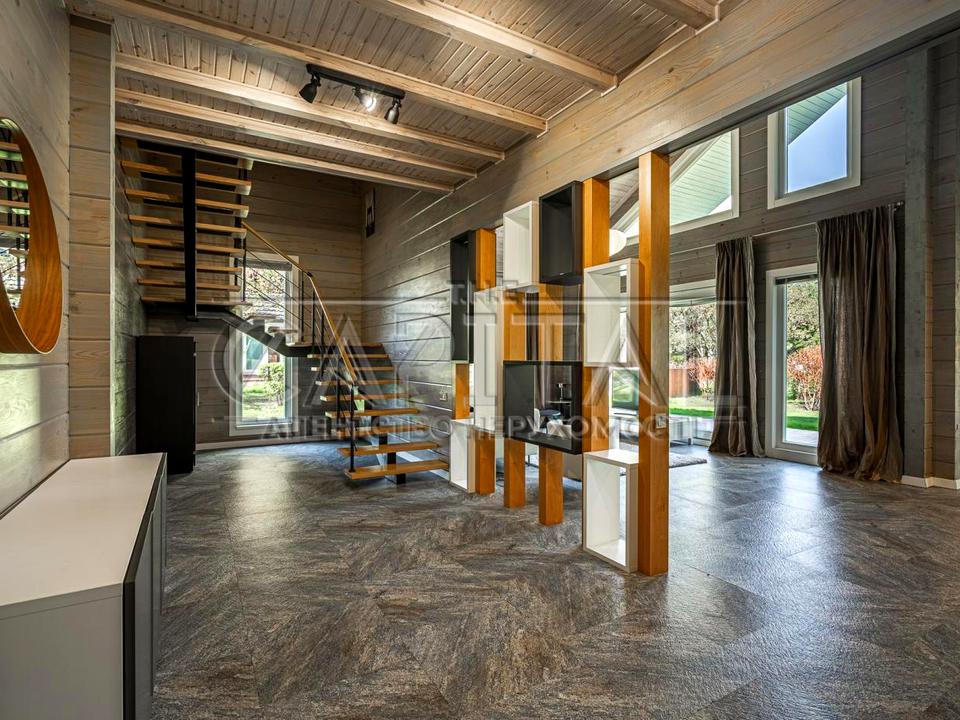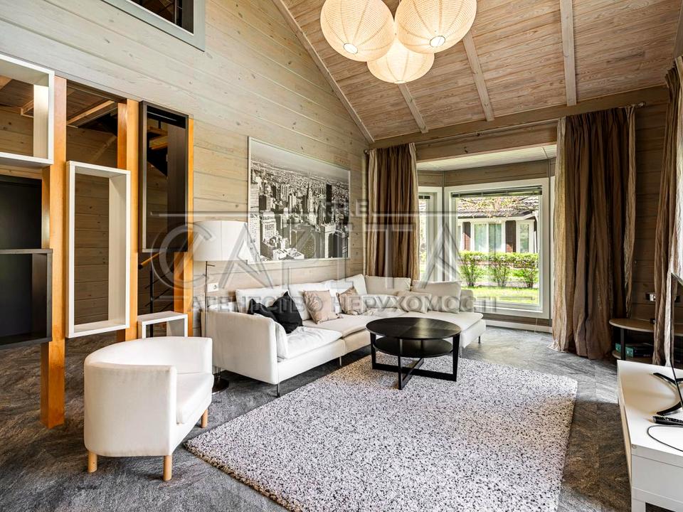 Пропонується в оренду сучасний еко-будинок з клеєного брусу у котеджному містечку Riverside Family Club, всього за 6 км від станції метро «Славутич», Дарницький район, Київ.