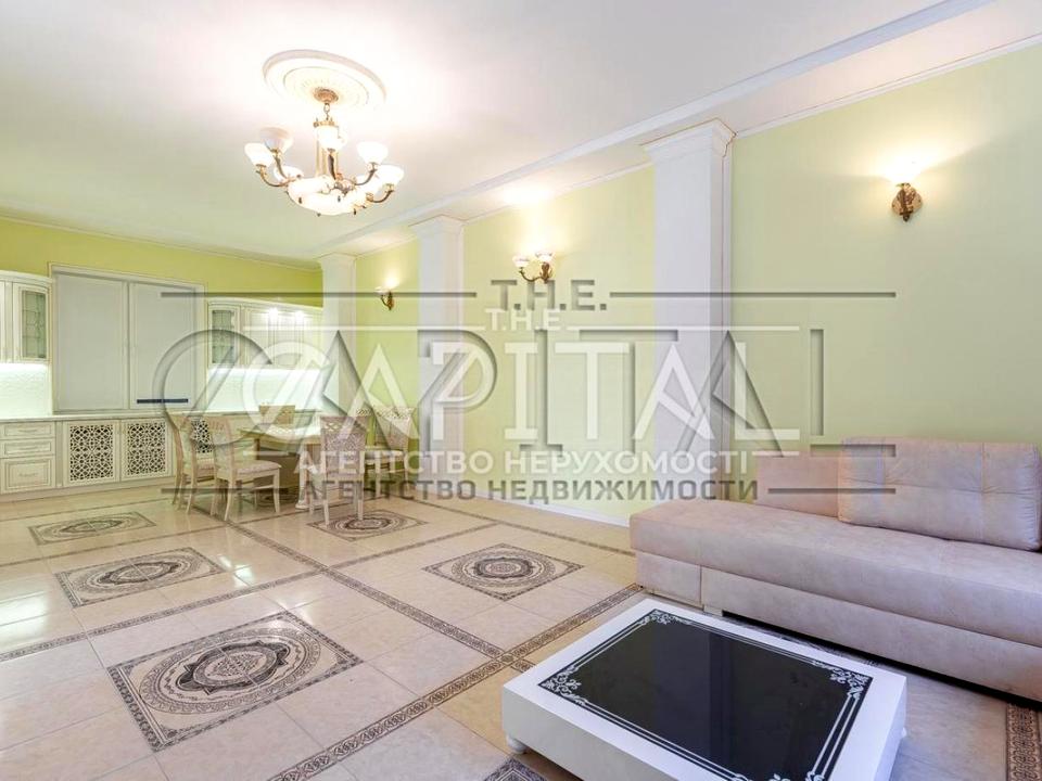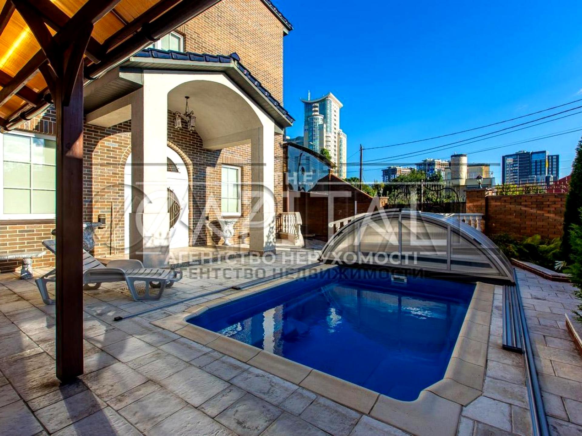 Цей стильний будинок, розташований у Печерському районі за адресою вул. Вільшанська 33, відрізняється комфортною зоною відпочинку з басейном.