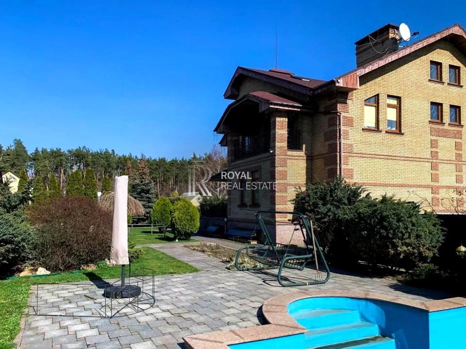 - Ділянка: 25 соток з охороною, зелений газон, барбекю-зона, басейн із підігрівом та вольєр для улюбленця.