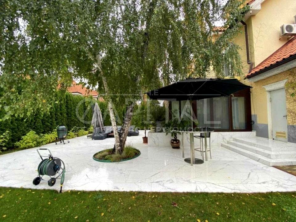 Котел - окрема і велика кухонна зона, пральня, комора, ванна кімната... 1 та ін. - вітальня з відкритим простором з виходом на закриту та утеплену терасу. 2 спальні (2 дитячі кімнати і один гість) велика ванна кімната.. 3 Е - головна спальня з власною ванною кімнатою і гардеробною.. У дворі упорядкована зона барбекю.. У будинку встановлено газове індивідуальне опалення.. Для дітей є басейн і батут. Будинок обладнаний всією необхідною технікою і меблями для комфортного проживання, є камін.. Ландшафтний дизайн.