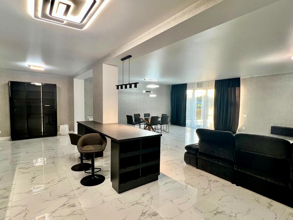 Загальна площа – 500 м². У будинку 4 просторі спальні, кабінет, велика кухня-вітальня (65 м²), 3 санвузли, пральня, гардеробні та сауна.
