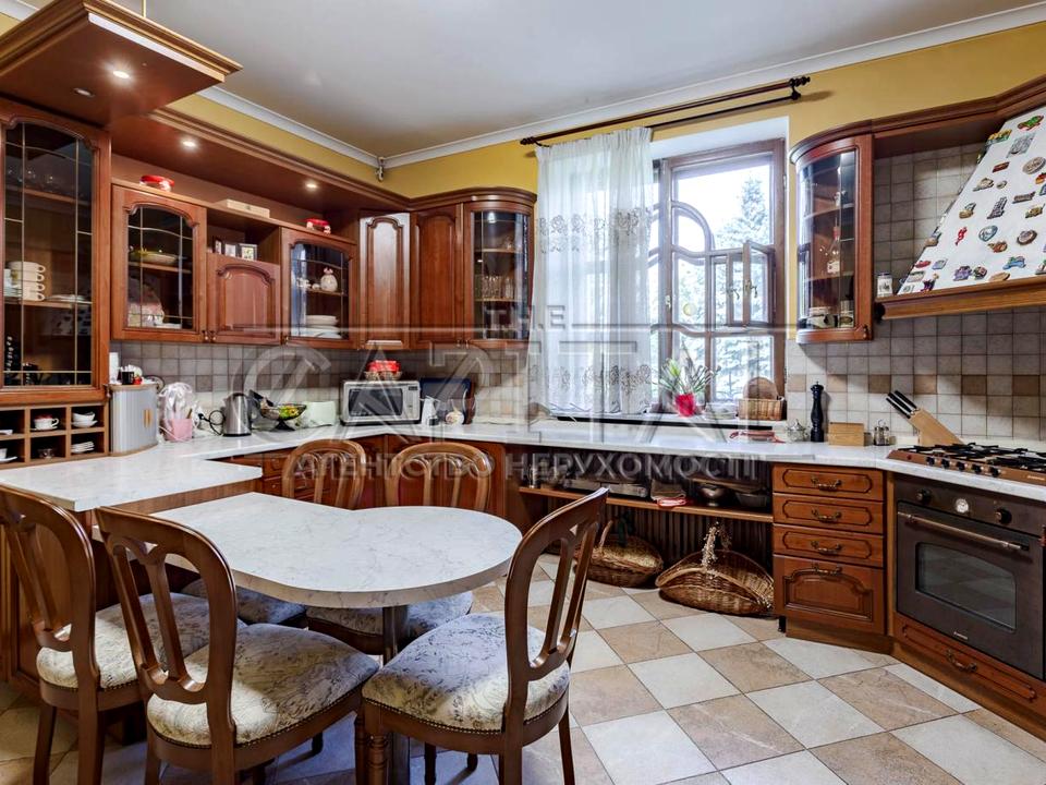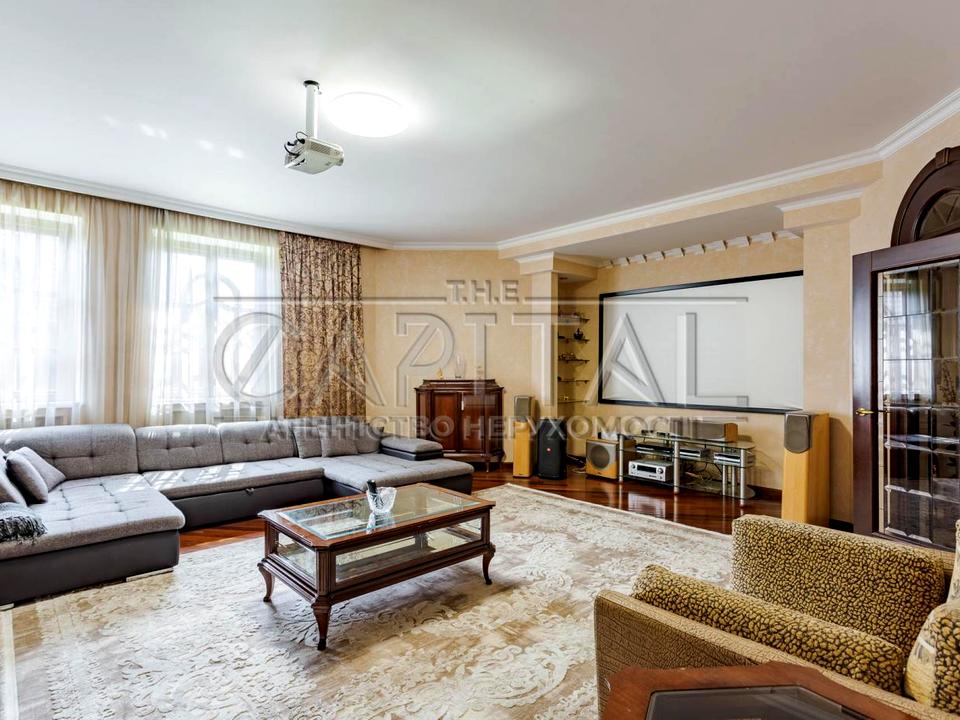 Пропонується в оренду приватний будинок у Голосіївському районі. Загальна площа будинку складає 425 квадратних метрів, а також є додатковий гостьовий будинок площею 150 квадратних метрів, який розташований поруч із сауною та міні-басейном.