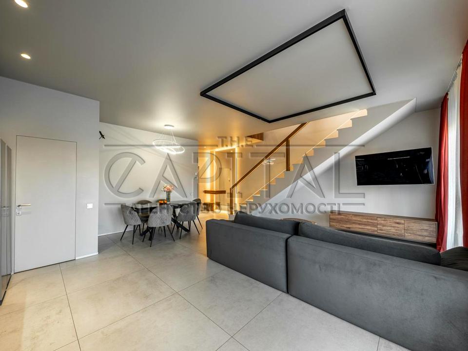 Життя у комфорті, безпеці та спокої — саме так почуваєшся в цьому сучасному будинку, розташованому в закритому котеджному містечку всього за кілька хвилин від центру столиці.