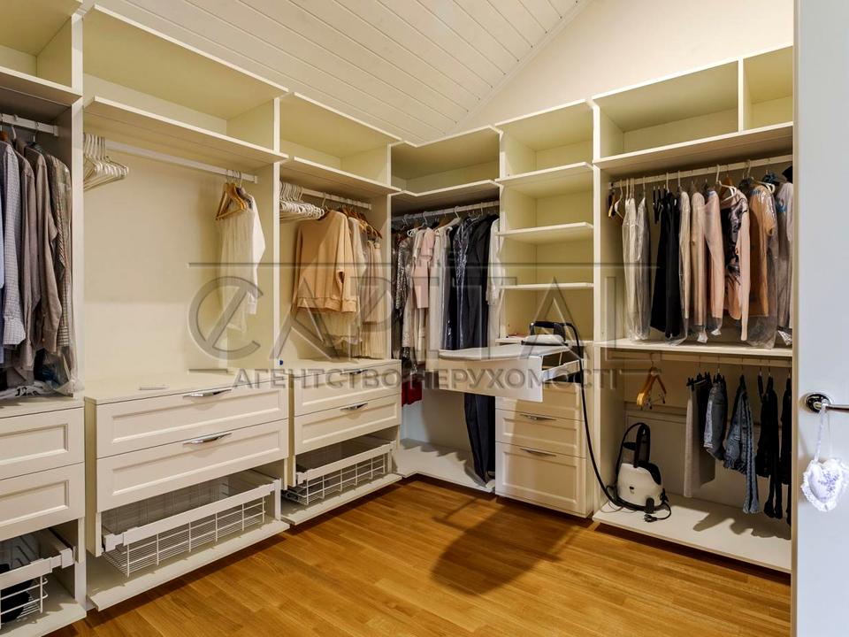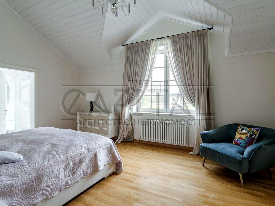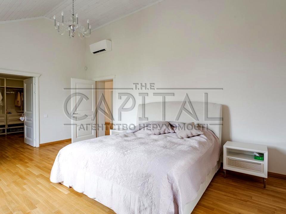 У котедж селищі «Коник» (р-н Жукова острова) з виходом на річку Коник і листяний ліс. Ремонт виконаний із високоякісних матеріалів, дизайн-проект в американському стилі. Ділянка 10 соток з озелененням та автополивом. Зручна транспортна розв'язка: прямий виїзд на Столичне шосе, 15 хв до центру міста, 20 хв до аеропорту «Бориспіль», зупинка громадського транспорту 3 хв і 10 хв до метро «Видубичі».