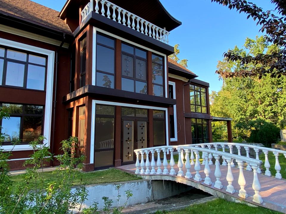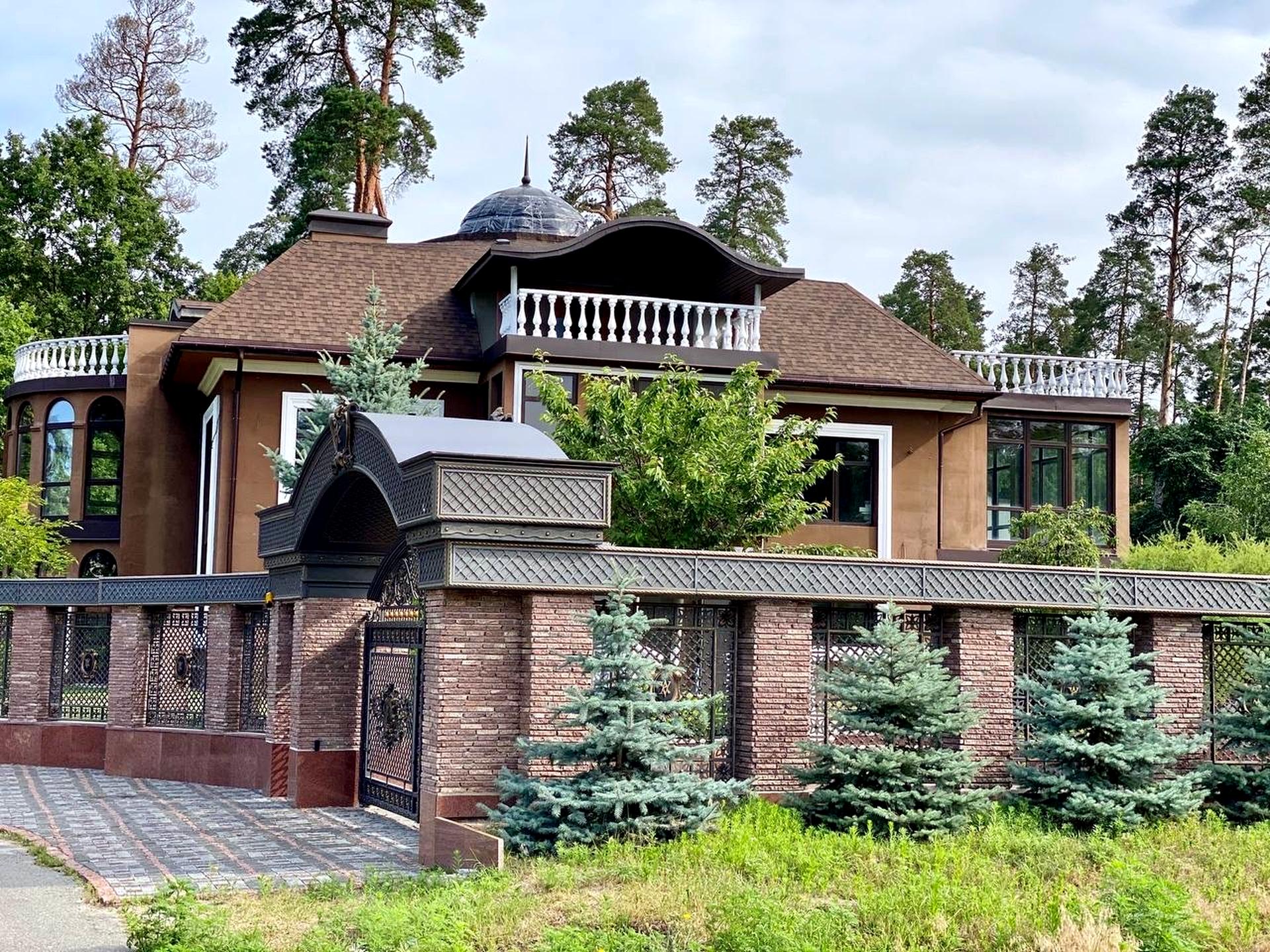 Будинок монолітно-каркасний з червоної цеглини з утепленням та стильним екстер'єром. Стан – під внутрішнє оздоблення: виконано розведення електрики (40 кВт), скління, заведено газ, воду (власну свердловину), передбачено геотермальне опалення, центральну вентиляцію. Системи керування вже у будинку. Планування вільне, включає зони господарських, SPA та житлових приміщень з критим басейном, лаундж зоною, банкетним та тренажерним залами, 5 спальнями, гостьовими кімнатами, численними вбиральнями, санвузлами, терасами та багато іншого.