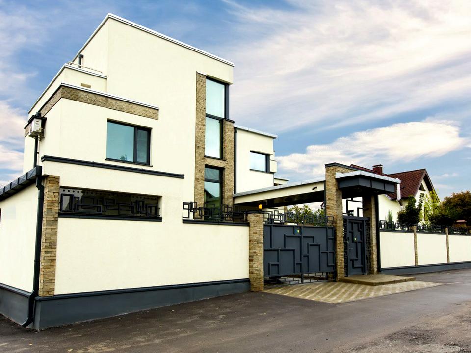 Котедж будувався для себе з використанням дорогоякісних матеріалів: камінь, метал, екоматеріали.
