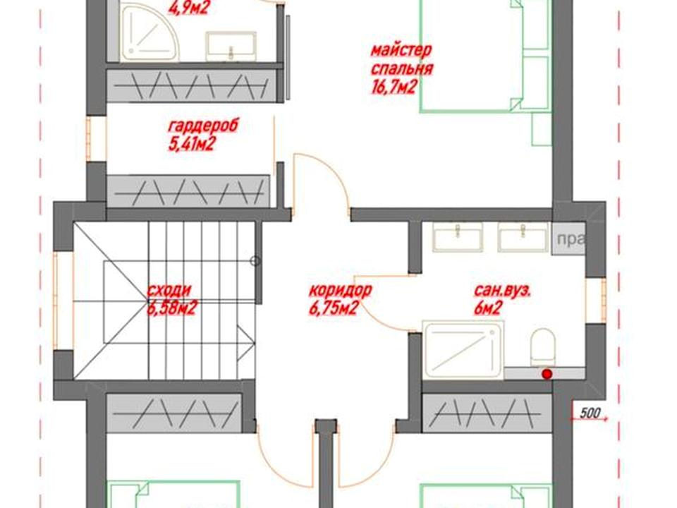 2 поверх: майстер-спальня з окремим гардеробом та санвузлом, 2 спальні та санвузол