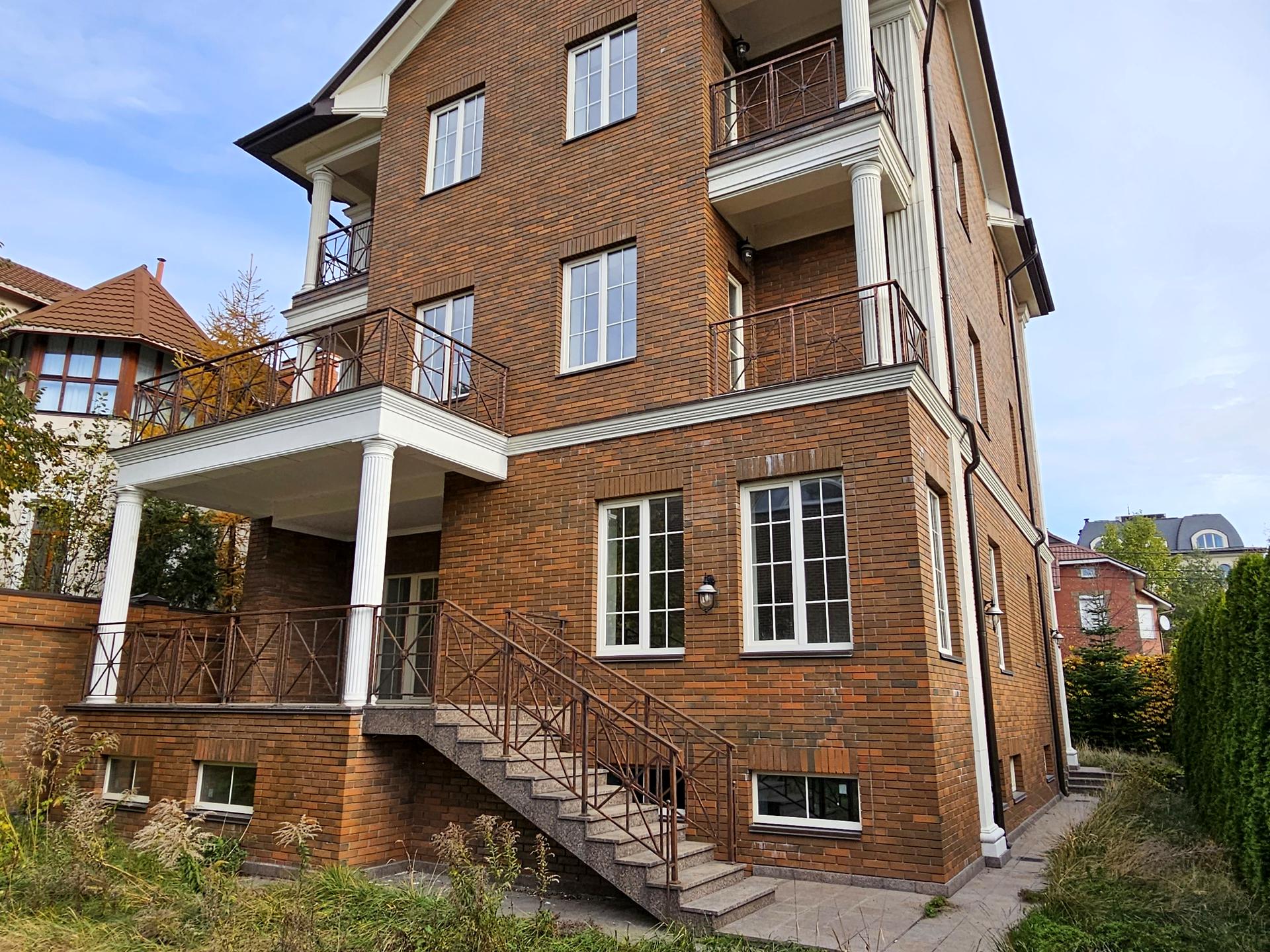 Дом построен в английском стиле в сочетании строгости и изысканности с выдержкой всех норм (клинкерный кирпич, белые окна, гранит). Установлены качественные стеклопакеты "Саламандра". Сделана внутренняя штукатурка под чистовую отделку. Выведена разводка электричества, воды, канализации и полива. В строительстве дома использовались дорогие и экологически чистые материалы. В доме собственная котельная оборудована экономичными немецкими котлами (2 котла Viessmann по 35 кВт конденсационного типа потребление газа в 2 раза ниже обычного), бойлер горячей воды. Установлены отопительный радиаторы, теплый пол, кондиционеры, разводка под телевидение и интернет в каждой комнате. Так же имеется видеонаблюдение, домофон, сертифицированный громоотвод. Просторный гараж на две машины оснащен автоматическими воротами. Асфальтированный подъезд Облагорожена придомовоя территории с автономным поливом. На участке ландшафтный дизайн , посажены фруктовые деревья и туи. Гранитная отмостка и терраса. Тихое, спокойное место для комфортной жизни в престижном районе. Рядом расположены иностранные посольства и представительства. Вы будете жить в атмосфере приватности, уединенности и в полной уверенности в своих соседях. Удобная транспортная развязка (станции метро «Дружбы народов», "Выдубичи". Рядом школа, детский сад, магазины, рестораны, спортклуб Лайф фитнес де люкс, Батанический сад 400м.Есть другие варианты домов и участков в Печерском р-н.
