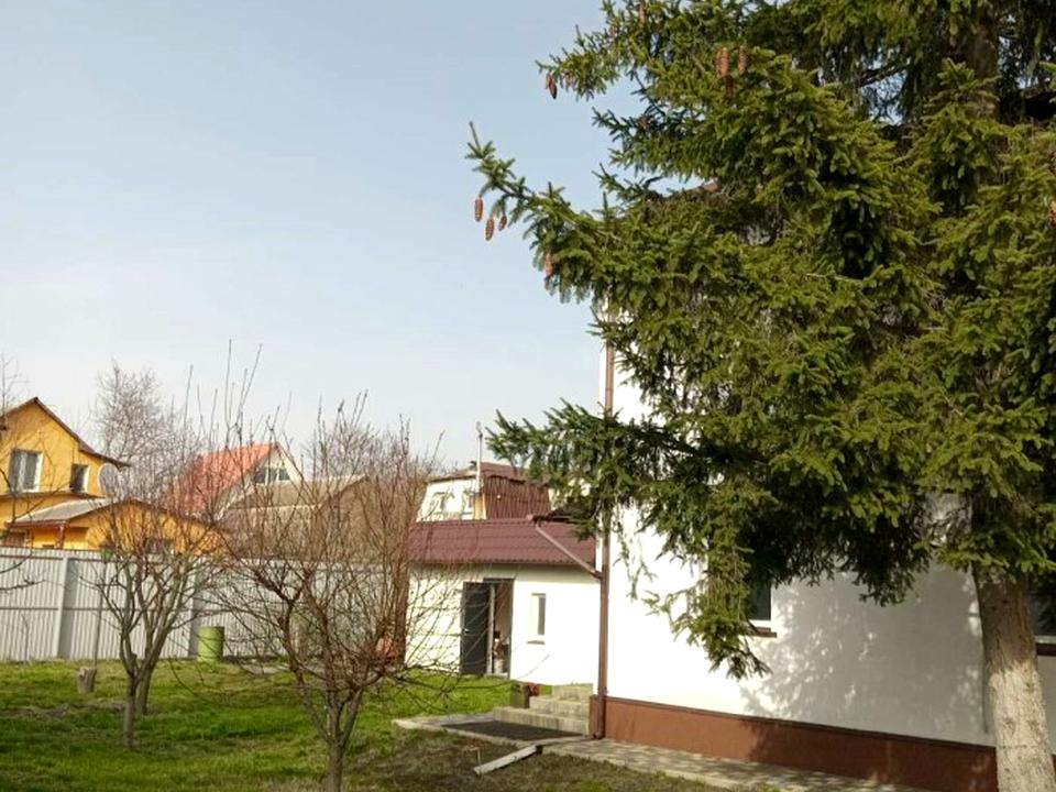 Окраса ділянки - багаторічна ялина, плодові дерева, доглянутий газон.