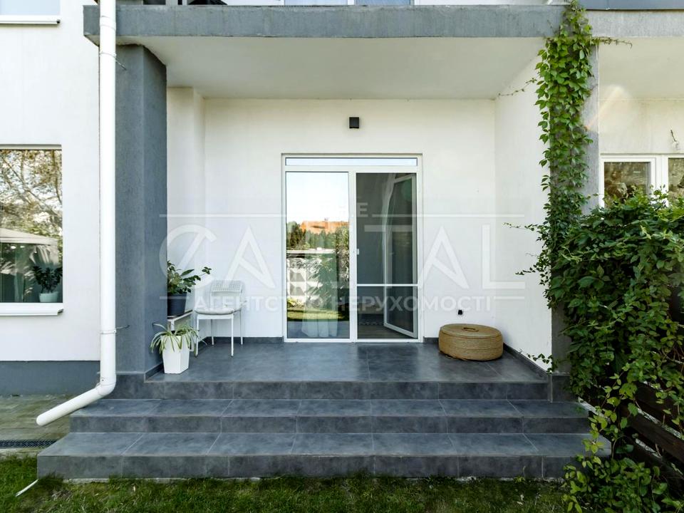 Площа ділянки — 3 сотки. У дворі висаджені квіти та декоративні рослини, нова та зручна зона барбекю, альтанка на 10 людей. Приватна хвіртка до будинку + закритий заїзд із автоматичними воротами на 4 дуплекси. Дружні сучасні сусіди.