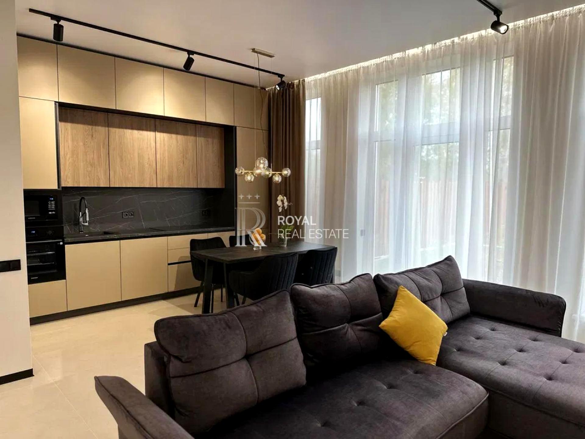 Таунхаус, 2 поверхи, 4 кімнати. Площа ділянки 2 сотки. Планування кімнат Роздільне. У будинку є Телевізор, Кондиціонер, Пральна машина, Холодильник, Басейн. Загальний стан будинку - З ремонтом. Комісія за послуги 5 %