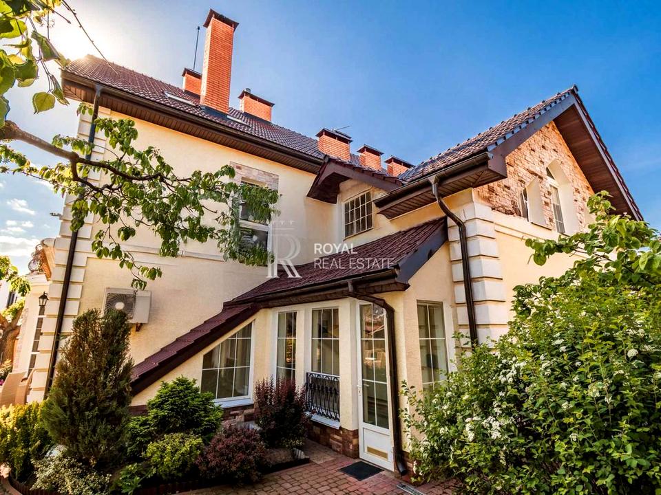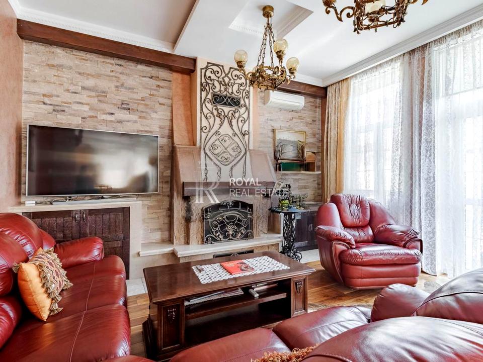 Внутрішній інтер'єр цього будинку продовжує тему класичного стилю, пропонуючи величні приміщення з високими стелями та вишуканим декором. Вітальня з каміном, обставлена антикварними меблями та дорогими тканинами, запрошує до затишних вечорів у родинному колі або зустрічах з друзями.