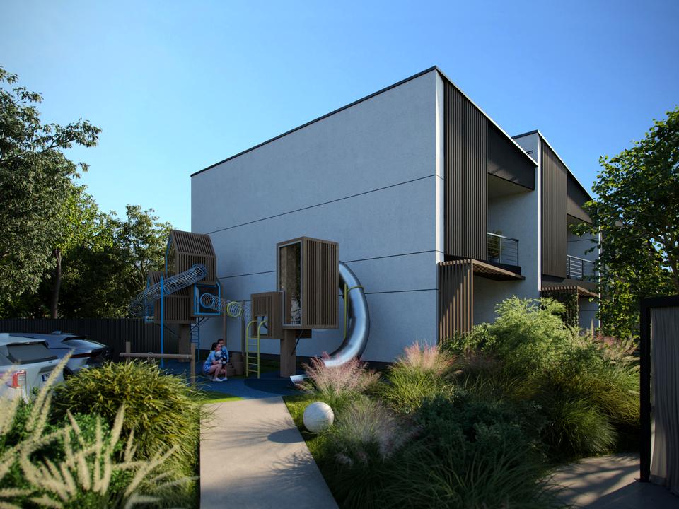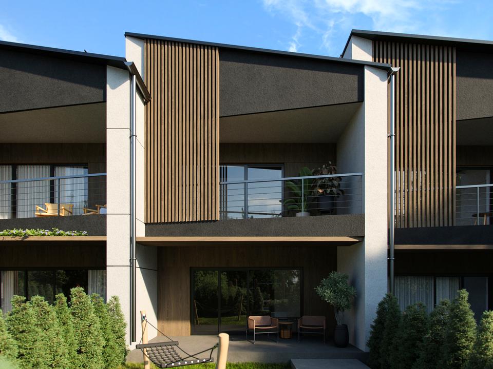 Кожен таунхаус повністю автономний. Встановлений власний насос, окремий септик, лічильники електроенергії, газ. Додатково передбачені сонячні панелі для економії та енергетичної незалежності.