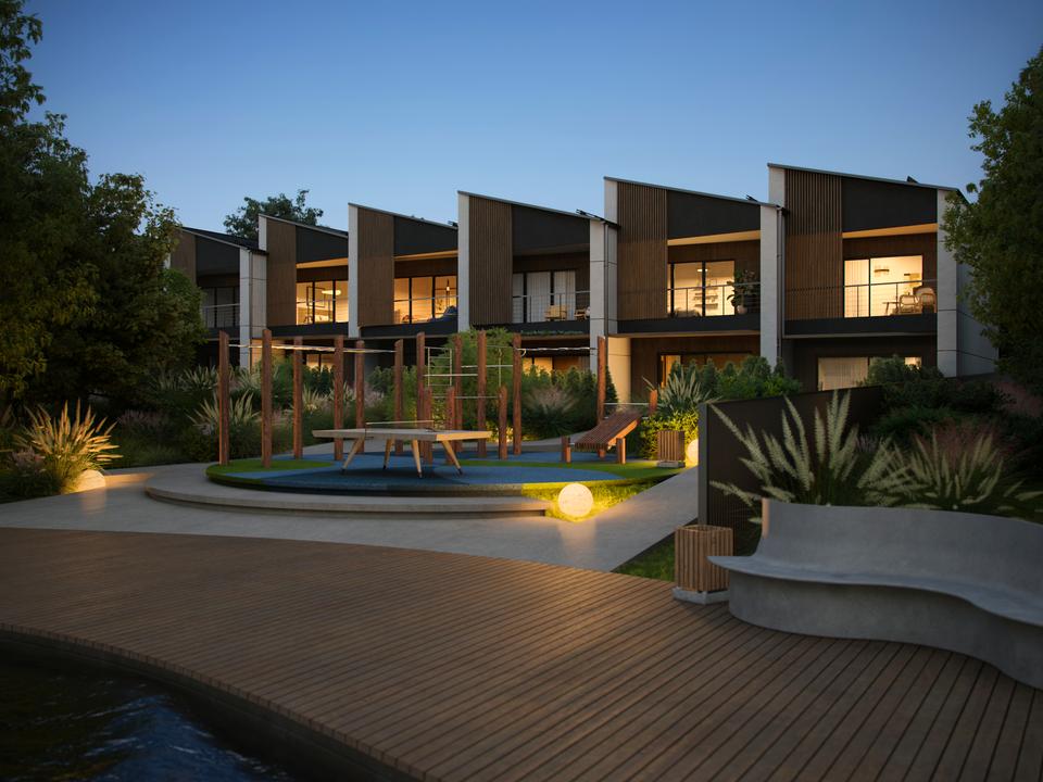 Кожен таунхаус повністю автономний. Встановлений власний насос, окремий септик, лічильники електроенергії, газ. Додатково передбачені сонячні панелі для економії та енергетичної незалежності.
