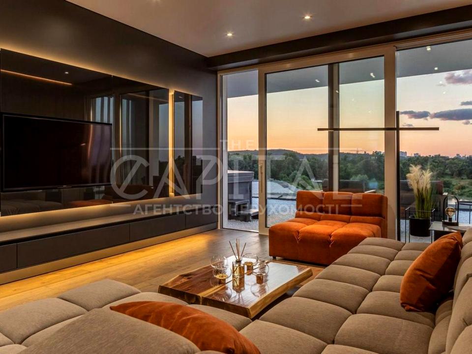 - лаунж-зона з виходом на видову терасу, що має джакузі. Укомплектована м'якими меблями Interia, ТВ 51”; сауна з видовим вікном, окремий с/в, душ, передбанник з місцем для розміщення бігової доріжки.