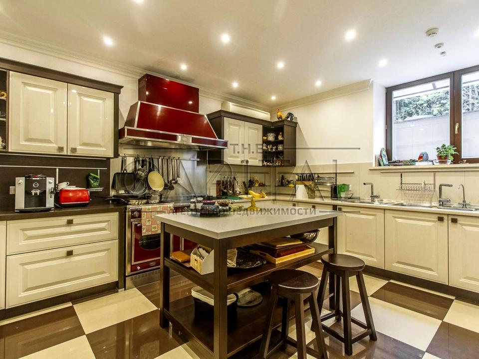 - кухня-столовая порядка 100 кв.м с огромным столом и высокими потолками + зона отдыха с диванами и баром