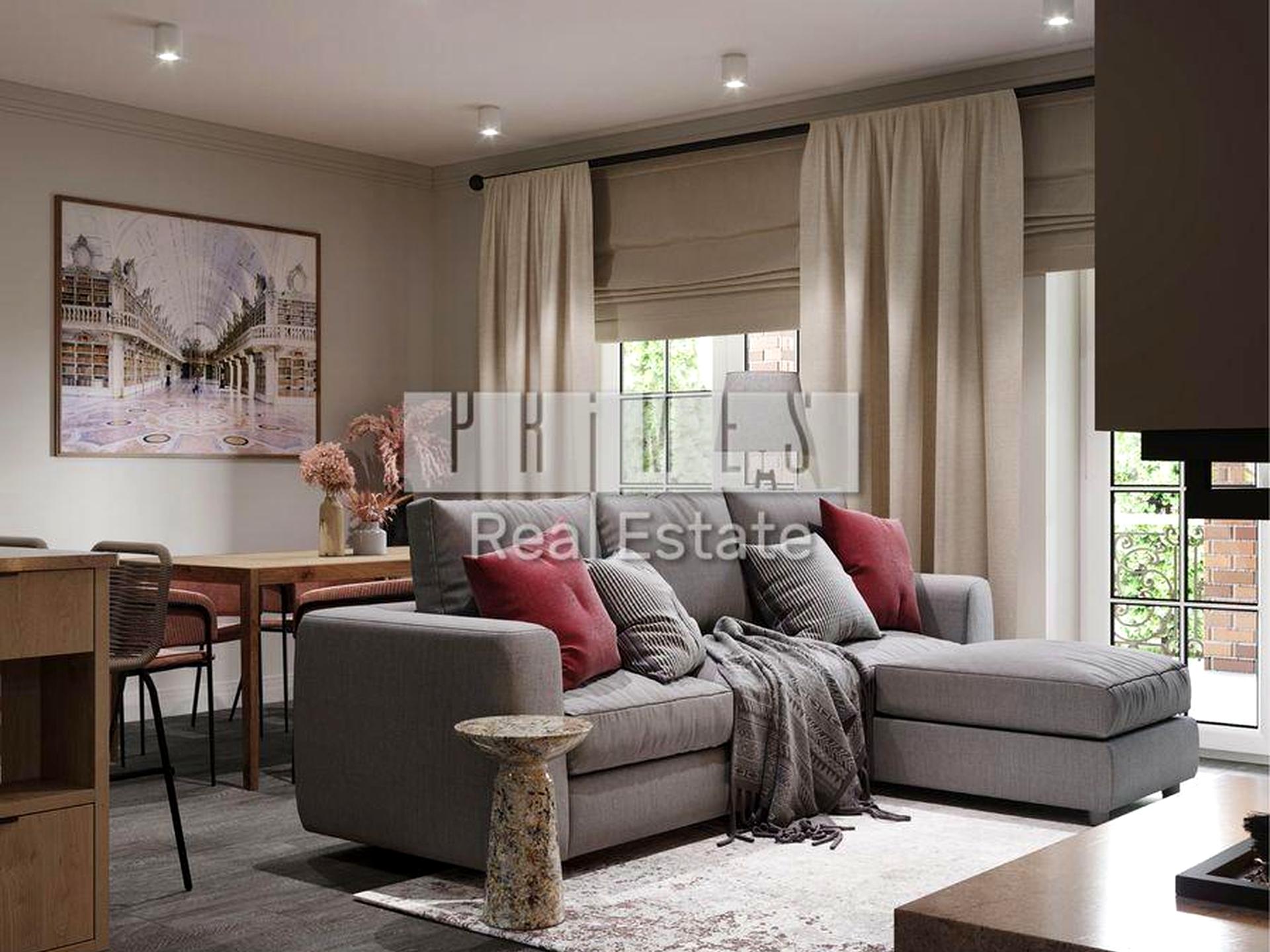 Планування: Кухня-вітальня, 3 спальні, гардероб, 2 санвузли, госп. блок (кімната з комунікаціями/пральні) та тераса.