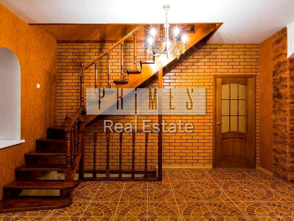 3-рівневий цегляний будинок 289/110 з цокольним поверхом та гаражем на 2 машини . Цоколь будинку виконаний із граніту , стіни із облицювальної цегли . Будинок просторий . Висота стель 3 метри . Планування компактні та продуман і. У будинку 5 кабінетів, які можна перетворити на житлові кімнати . При вході в будинок крита тераса площею 12 кв.м . Місцем для відпочинку стане просторий зал (переговорна) , родзинкою якого є камін .