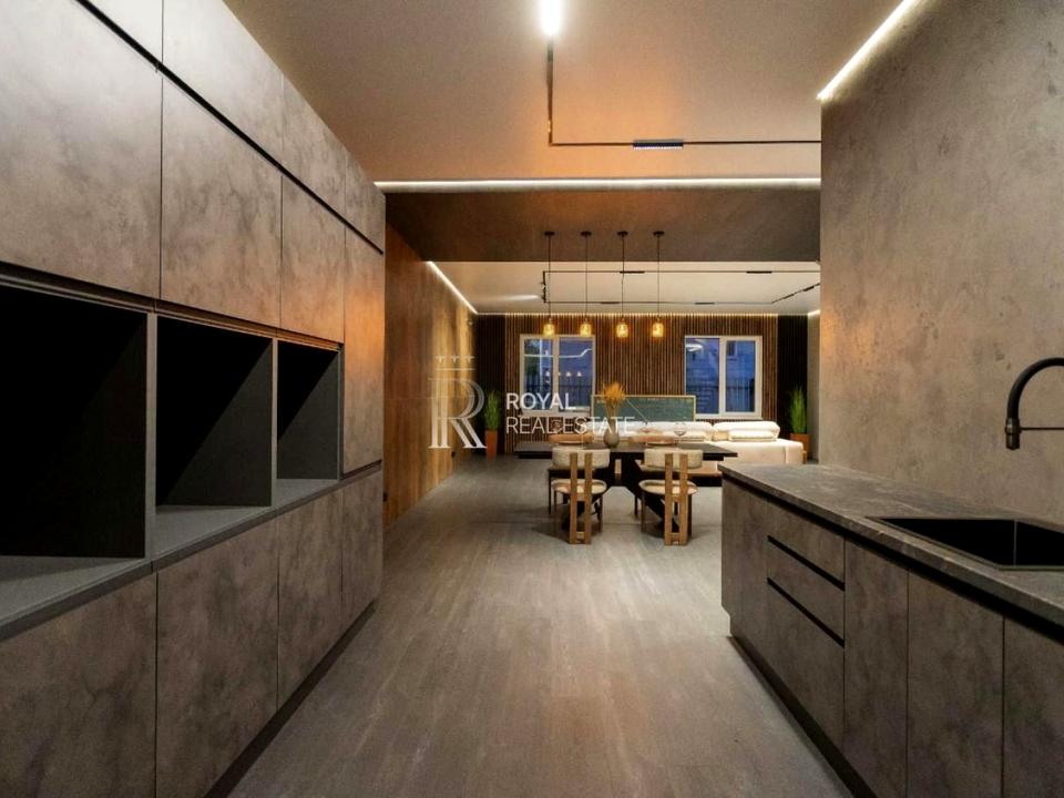 Ексклюзивні сходи, великий і зручний диван BLANCHE, обідній стіл Італія — подвійна кераміка.
