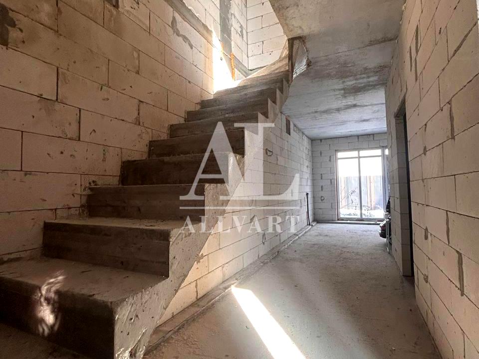 Таунхаус, 3 поверхи, 5 кімнат. Матеріал стін - монолітно-бетонний, фундамент будинку - блоки, матеріал перекриттів - монолітний залізобетон. Під'їзд до будинку - бетон. Площа ділянки 2 сотки. Висота стелі 2.8 метра. В будинку 1 балкон. Тип кухні - кухня-студія. Немає підвалу. Будинок побудований в 2023 році. Своя каналізація. Загальний стан будинку - Без ремонту. Газу немає. Опалення центральне. Кількість санвузлів: 3. Інтернету немає. Кількість паркомісць: 2. Кількість спален: 3. Комісія за послуги 5 %