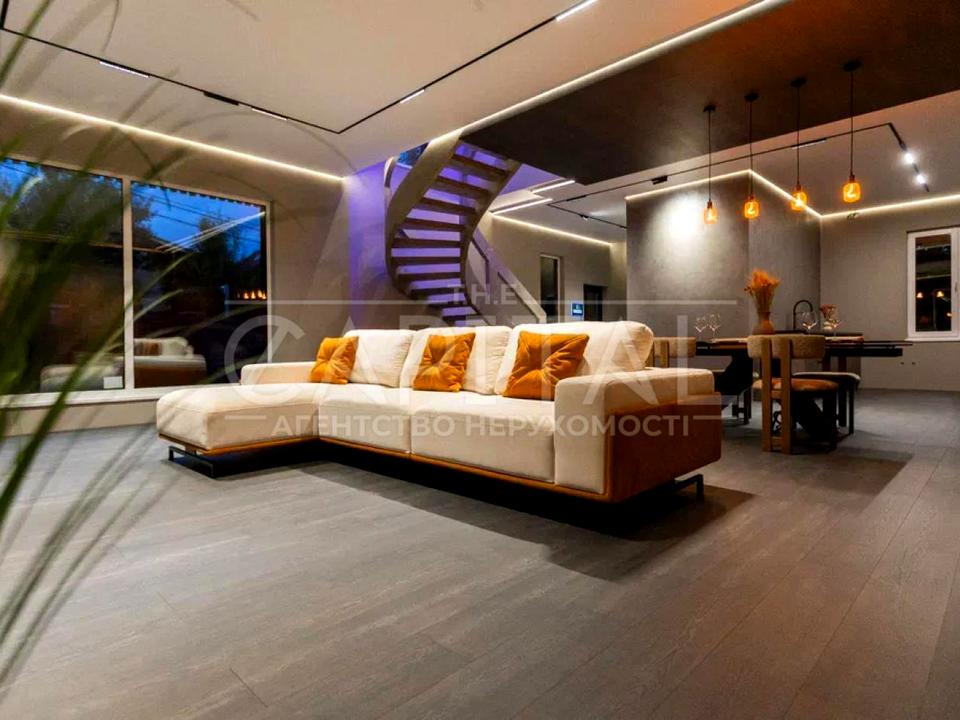 Ексклюзивні сходи, великий і зручний диван BLANCHE, обідній стіл Італія — подвійна кераміка.