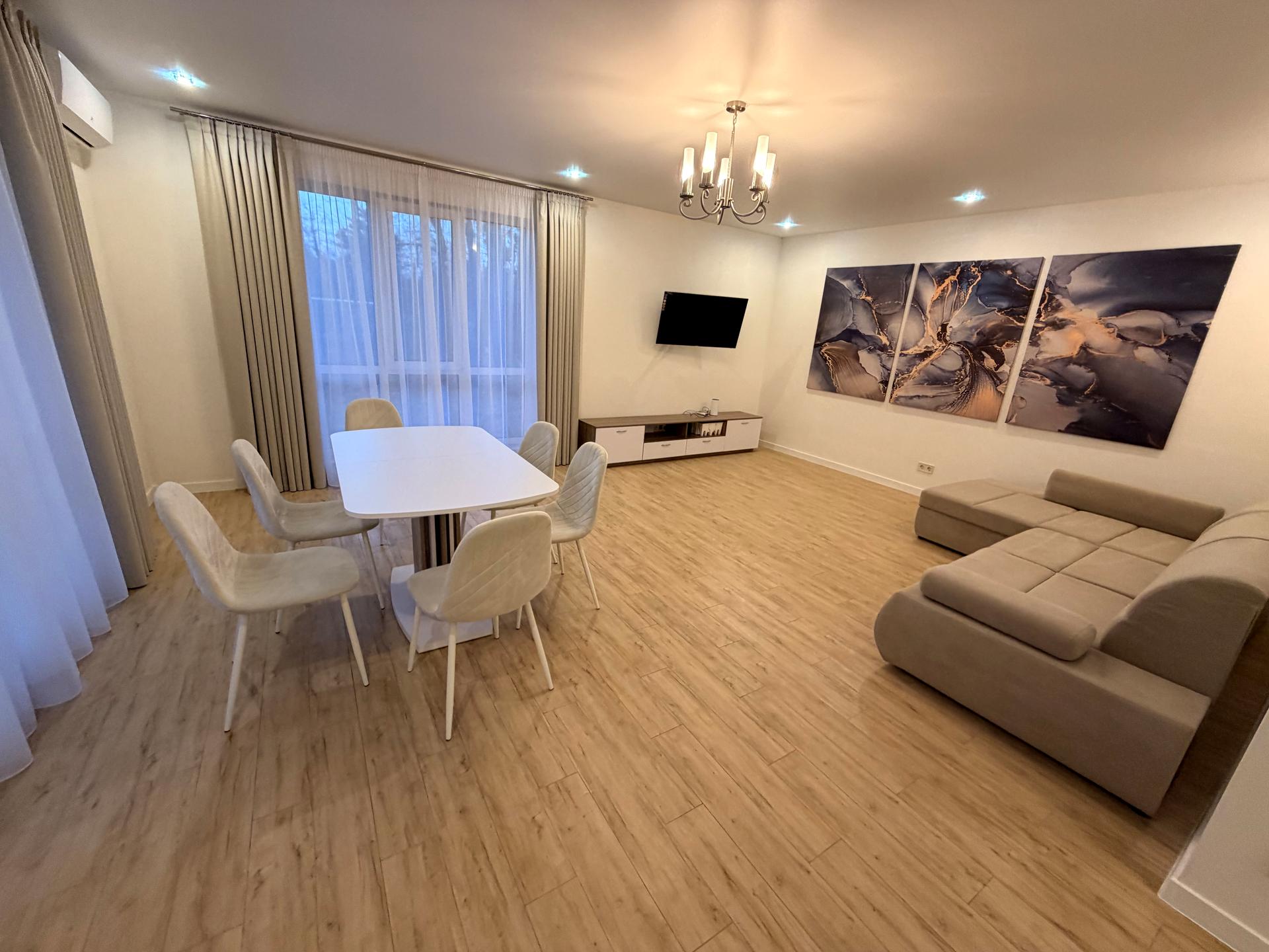 Таунхаус, 2 поверхи, 3 кімнати. Матеріал стін - газоблок. Площа ділянки 8 соток. Висота стелі 3 метра. Тип кухні - кухня-студія. Немає підвалу. У будинку є Телевізор, Підігрів підлоги, Кондиціонер, Пральна машина, Сушильна машина, Душова кабіна, Ванна, Холодильник, Мікрохвильовка, Посудомийна машина. Будинок побудований в 2024 році. Загальний стан будинку - З ремонтом. Опалення котел електричний. Кількість санвузлів: 2. Тип автономної електроенергії: генератор. Кількість паркомісць: 2. Кількість спален: 3. Без комісії