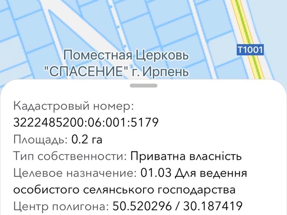 Кадастровий номер 3222485200:06:001:****  верифіковано через реєстр