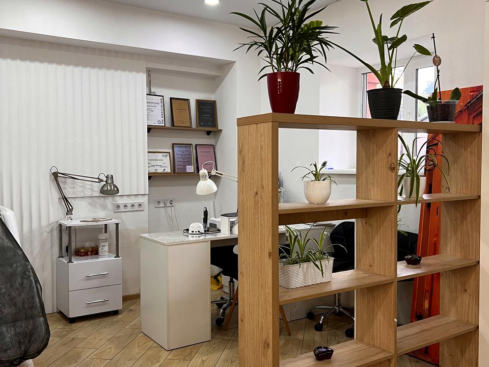 Приміщення гарно зоноване, є зона для манікюру, перукаря та рецепції.