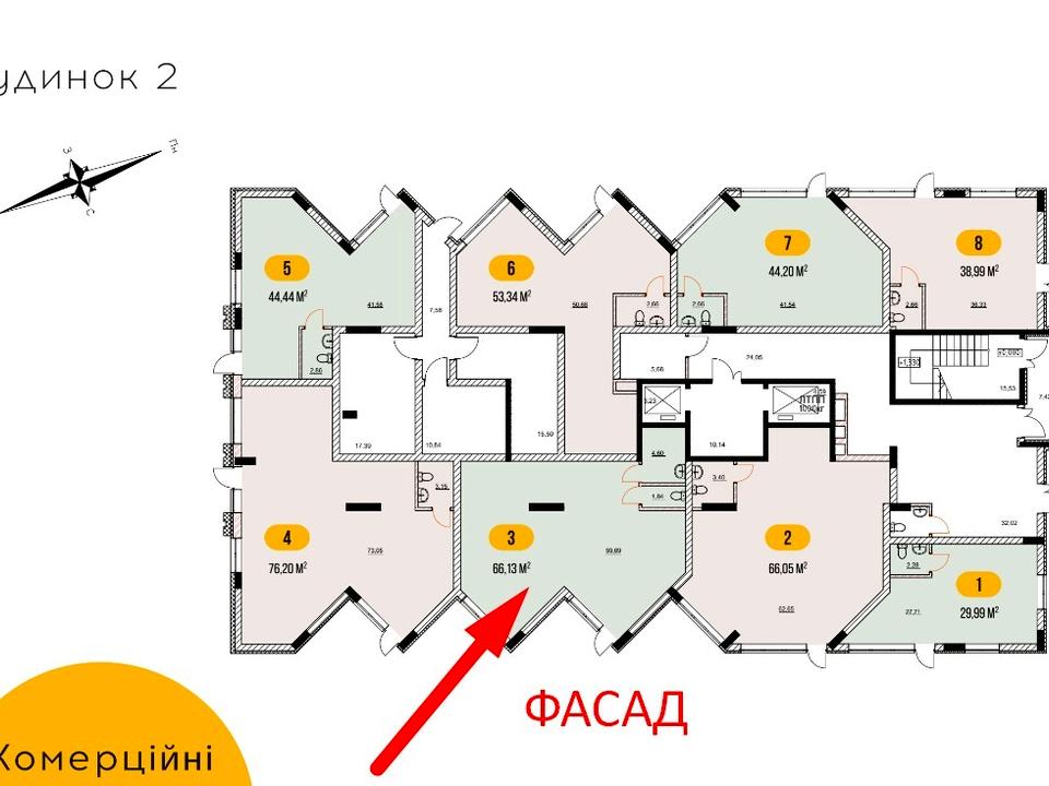 Пропонується два приміщення площею 75.1 м² у Будинку 2. Введений. ФАСАД з Шосе.