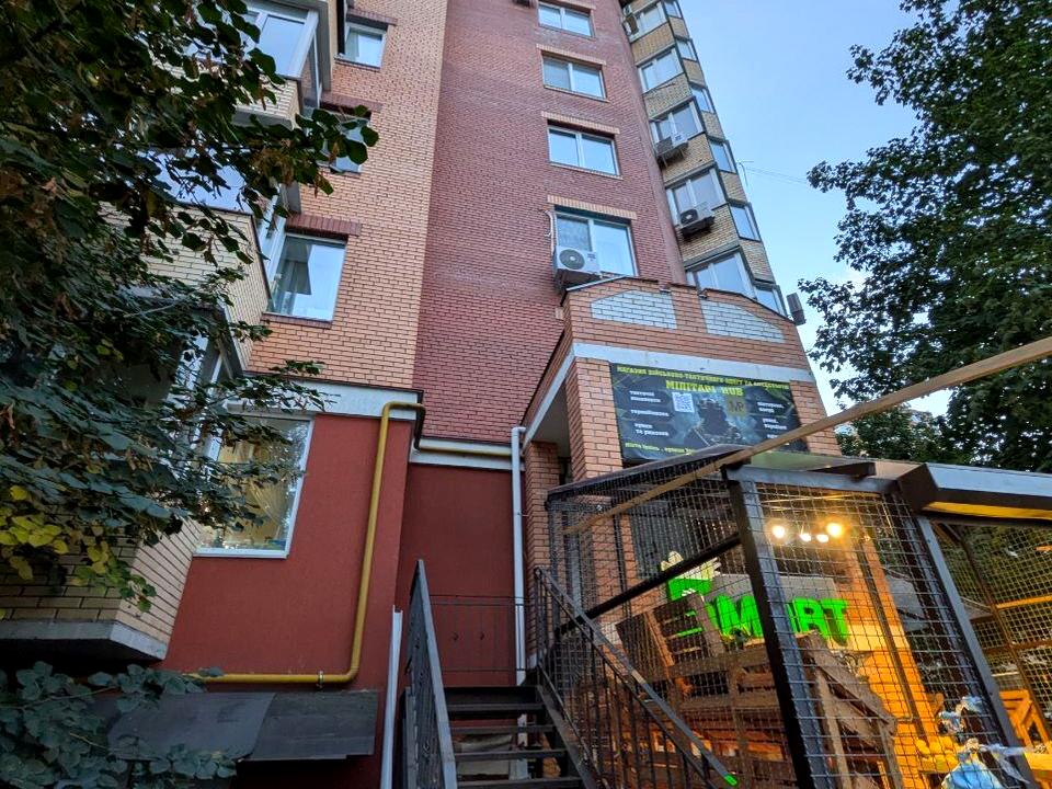 Локація: фасад внутрішнього двору, прохідне місце, поряд паркінг. У цоколі продуктовий магазин – стабільний потік людей.