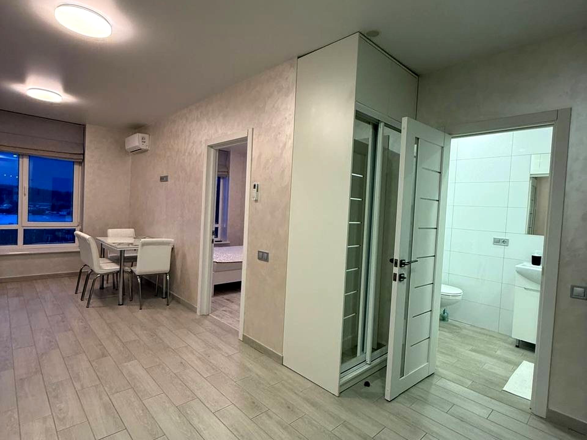 Загальна площа становить 45 кв.м. Суміжний санвузол. З євроремонтом. З теплою підлогою.
