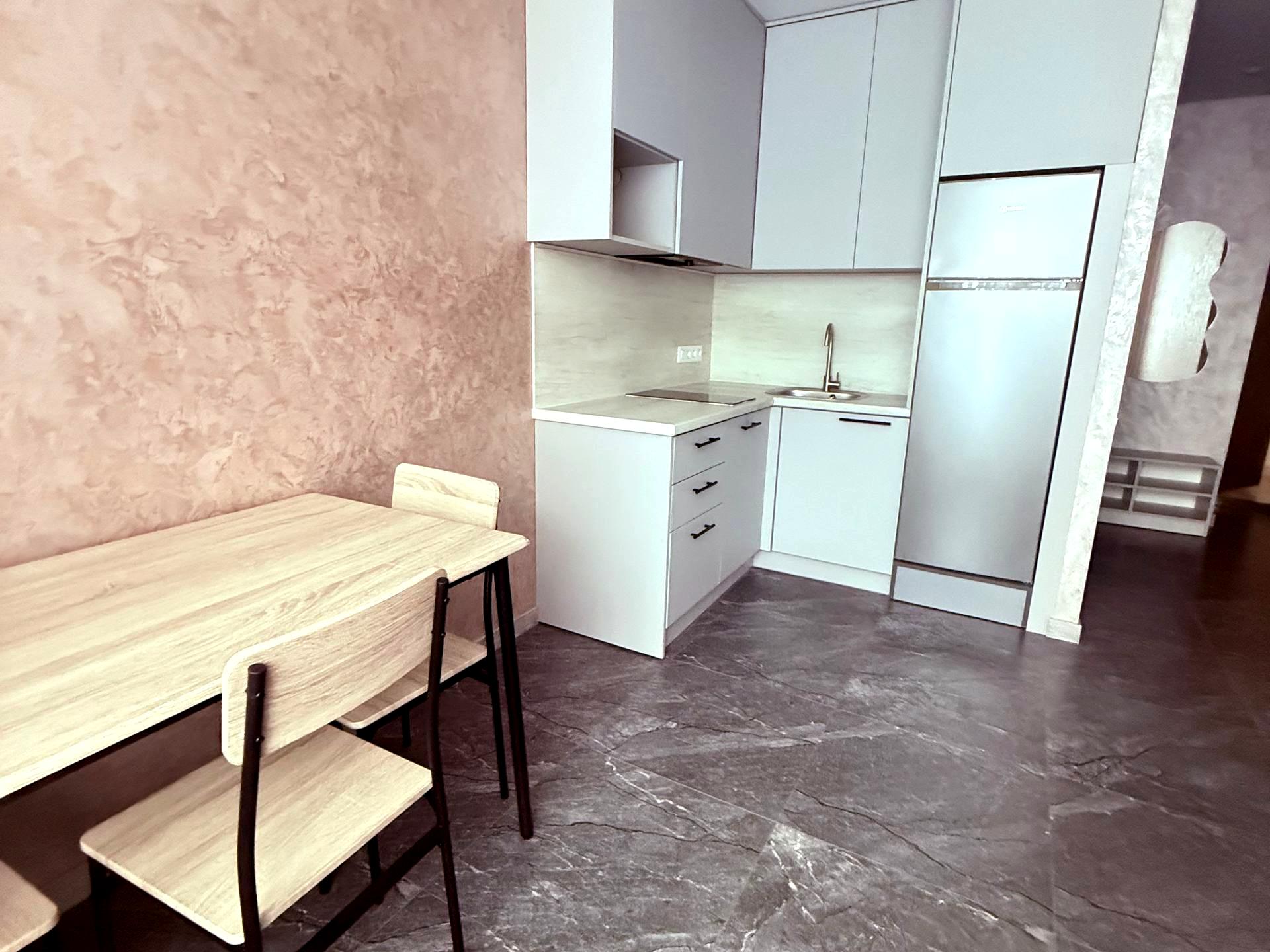 В квартирі 1 кімната, Технологія будівництва - Монолітно-каркасна, Тип будинку - Спец. проект. Немає газу, кухонна плита електрична. Немає балкона. У квартирі є Телевізор, Підігрів підлоги, Кондиціонер, Душова кабіна, Холодильник, Посудомийна машина. Будинок побудований в 2022 році. Загальний стан квартири - З ремонтом. Гаряча вода - електричний бойлер. Кількість санвузлів: 1. Інтернет оптоволоконний. Працює без світла - вода, опалення, інтернет, ліфт. Тип кухні - кухня-студія. Кількість спален: 1. Комісія за послуги 50 %