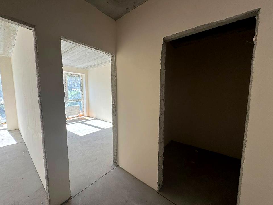 Квартира світла та простора завдяки великим панорамним вікнам, через які відкривається гарний вид і потрапляє багато природного світла. У квартирі зручне, продумане планування: проста кухня-вітальня, окрема спальня кімната , суміжний санвузол та гардеробна .