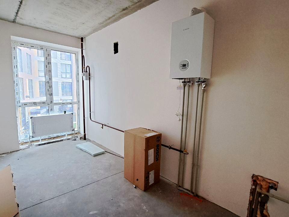 Котел. радіатор, розведено опалення та сантехніка, лазерна стяжка та гіпсова штукатурка стін.