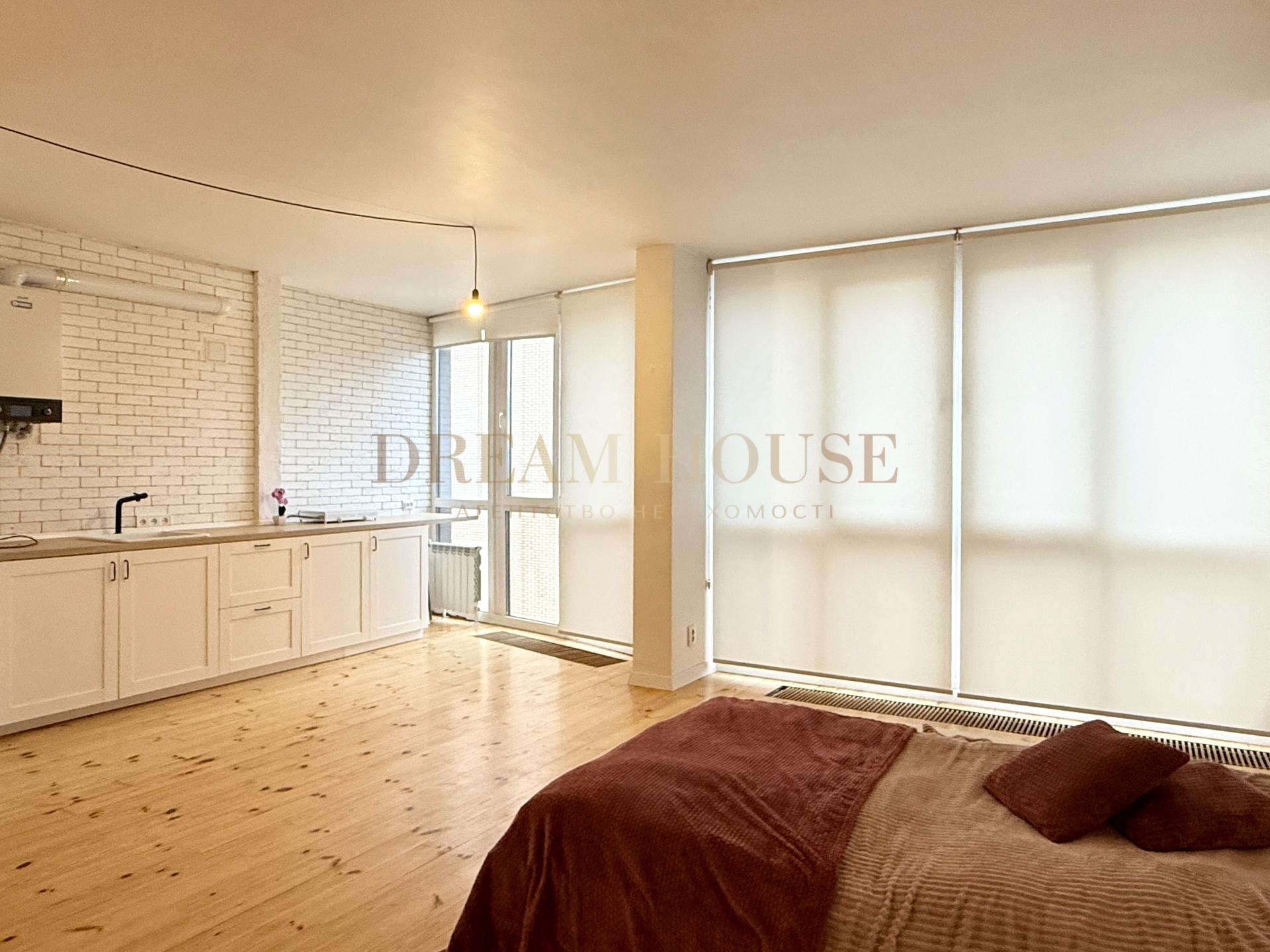 Простора квартира з місцем для гардеробної, варіантами комфортного зонування спальні, кухні, місць роботи та відпочинку.