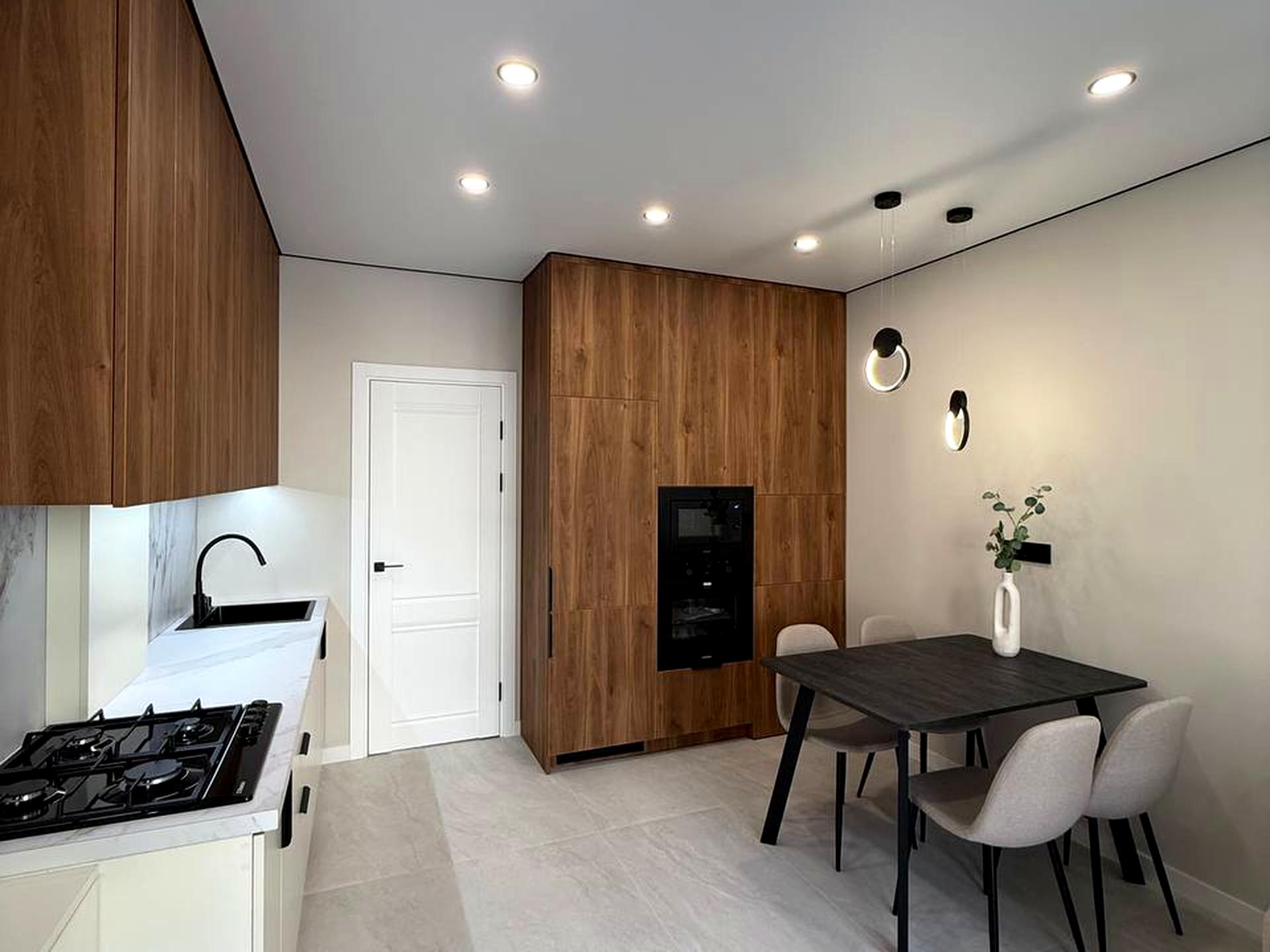 Ремонт виконаний в світлих тонах з акцентними деталями. Укомплектована усім необхідним, можна одразу заходити і жити. Кухня розділена на 2 зони робоча поверхня та обідня зона а також зона вітальні з розкладним диваном. Спальня з місткою шафою та двоспальним ліжком з підйомним механізмом.