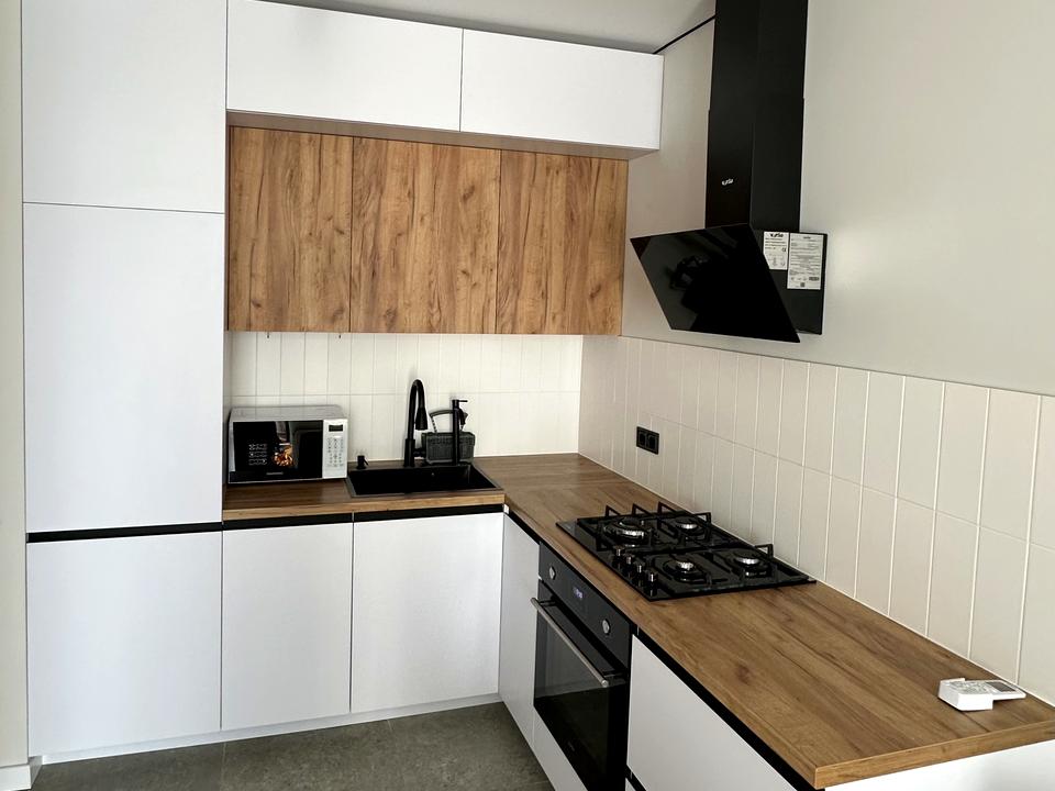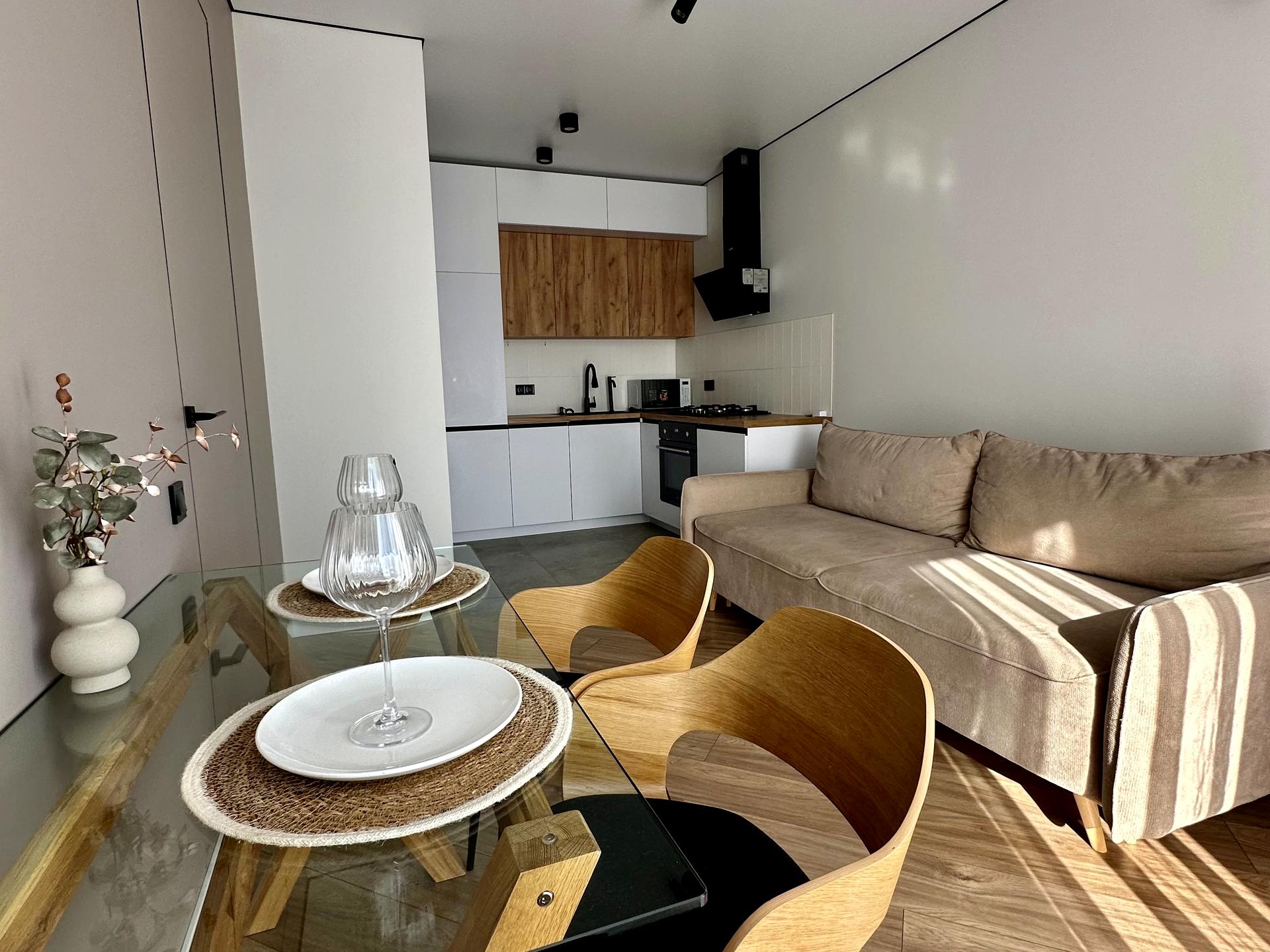 Продається євро 2 кімнатна квартира 39 м2 з найкращим плануванням — кухня - студія де є місце для відпочинку та комфортна спальня кімната.